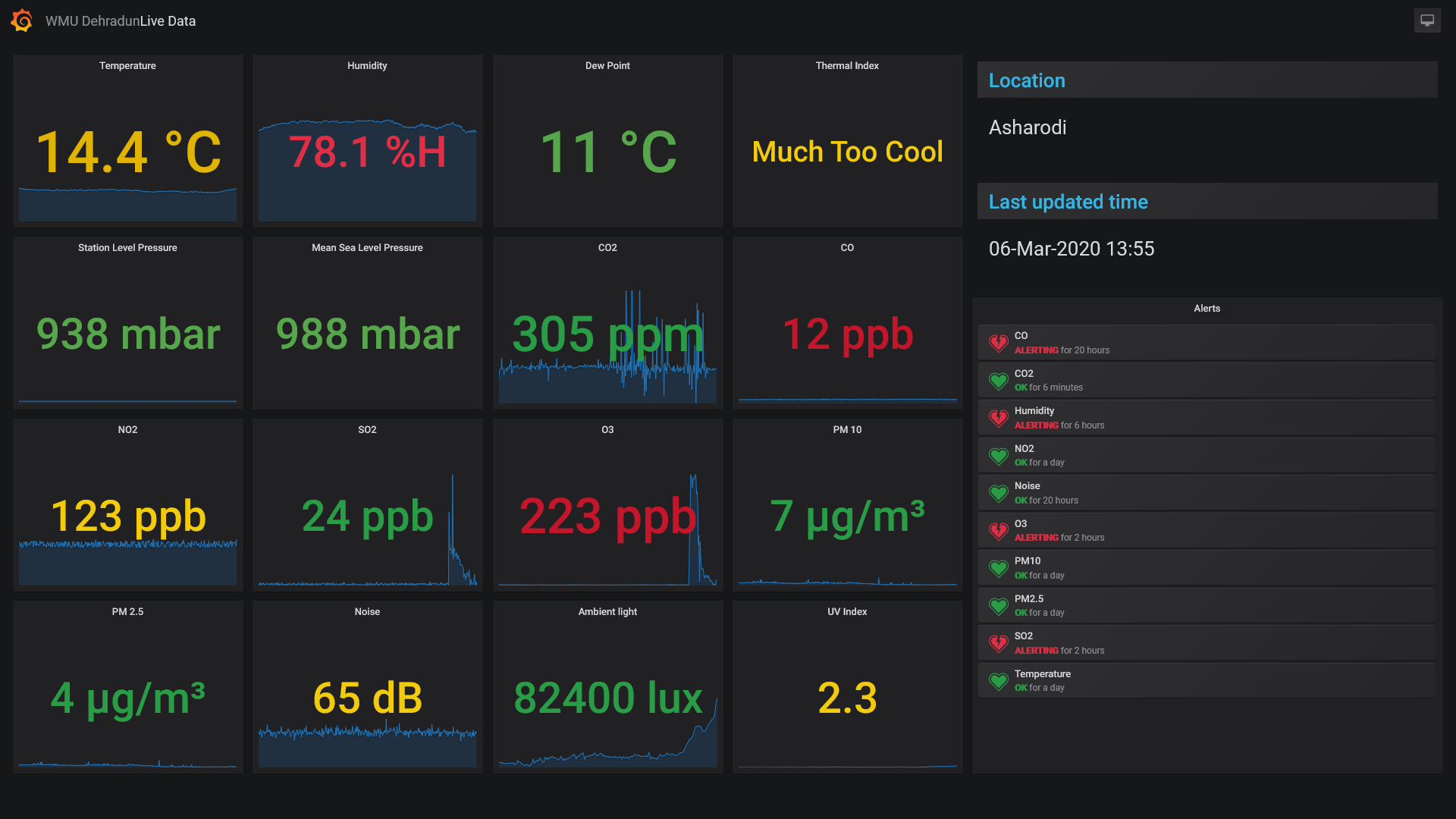 Real Time Dashboard to show parameters captured by IOT Sensors across city
