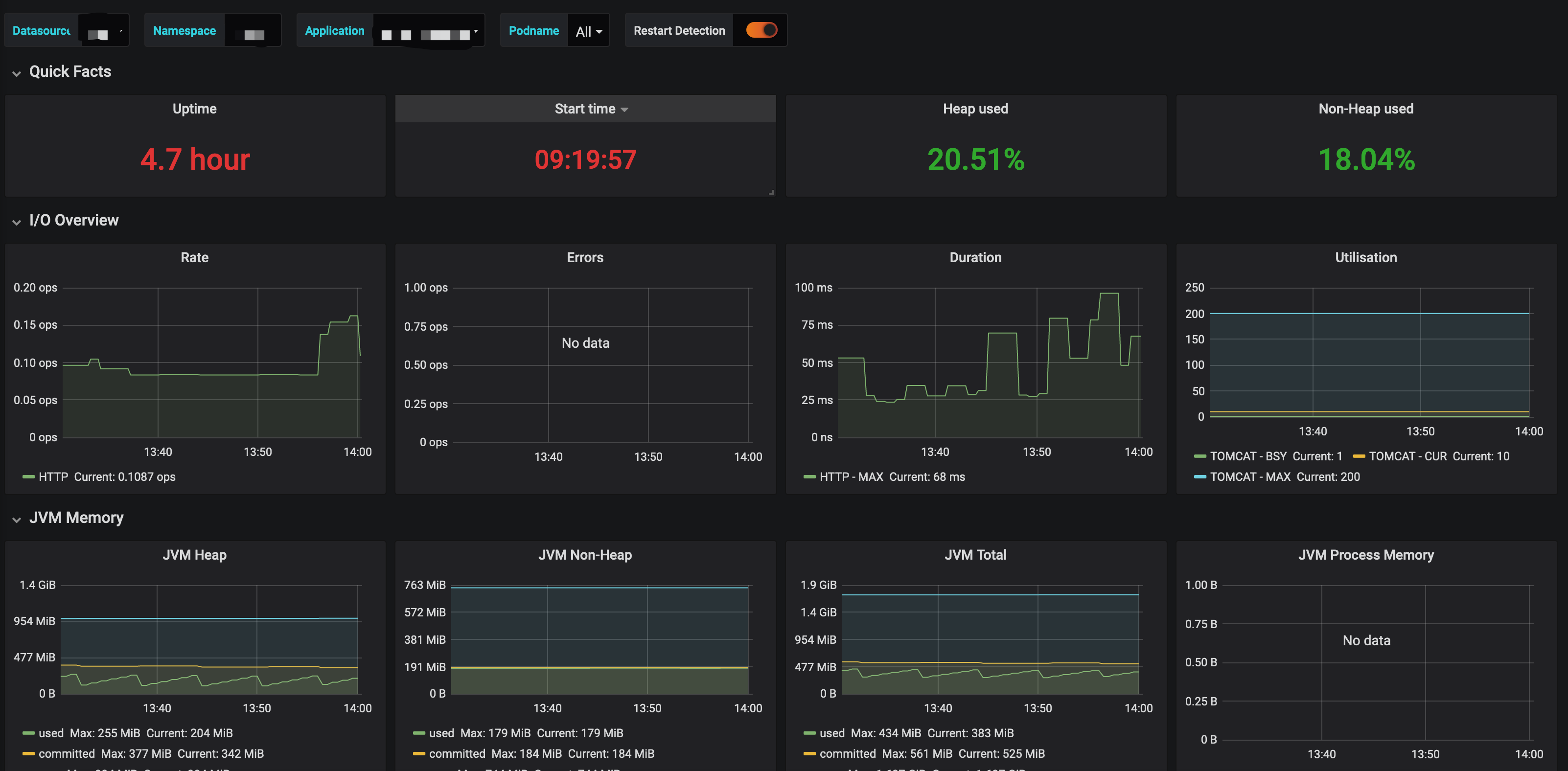 Dashboard for Micrometer instrumented applications (Java, Spring Boot, Micronaut) Filter by datasource/namespace/node.