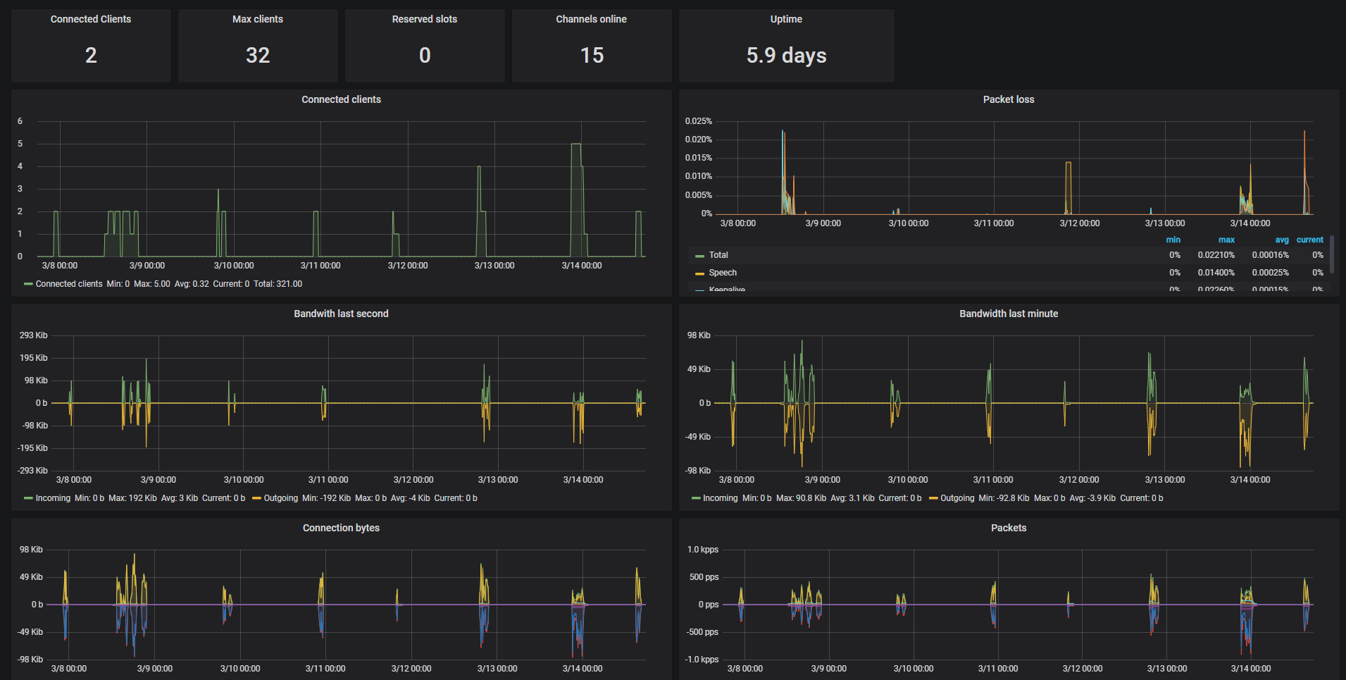 Sample dashboard for GitHub project https://github.com/TilmannF/teamspeak-prometheus