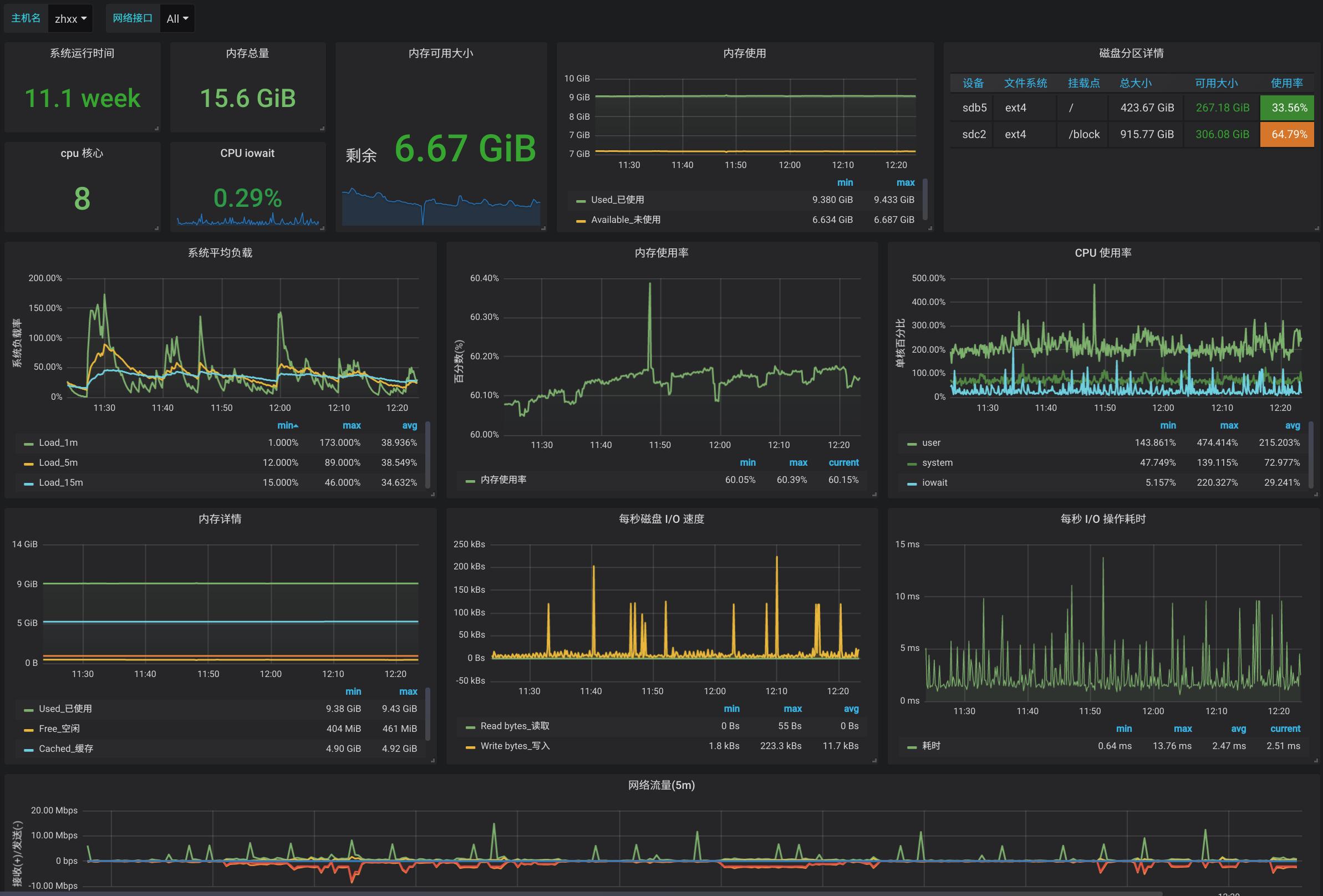 导入看板后,需要根据实际情况在看板右上角点击Dashboard settings--Variables设置好变量,对于网络监控,默认屏蔽了 docker 相关的虚拟网卡流量