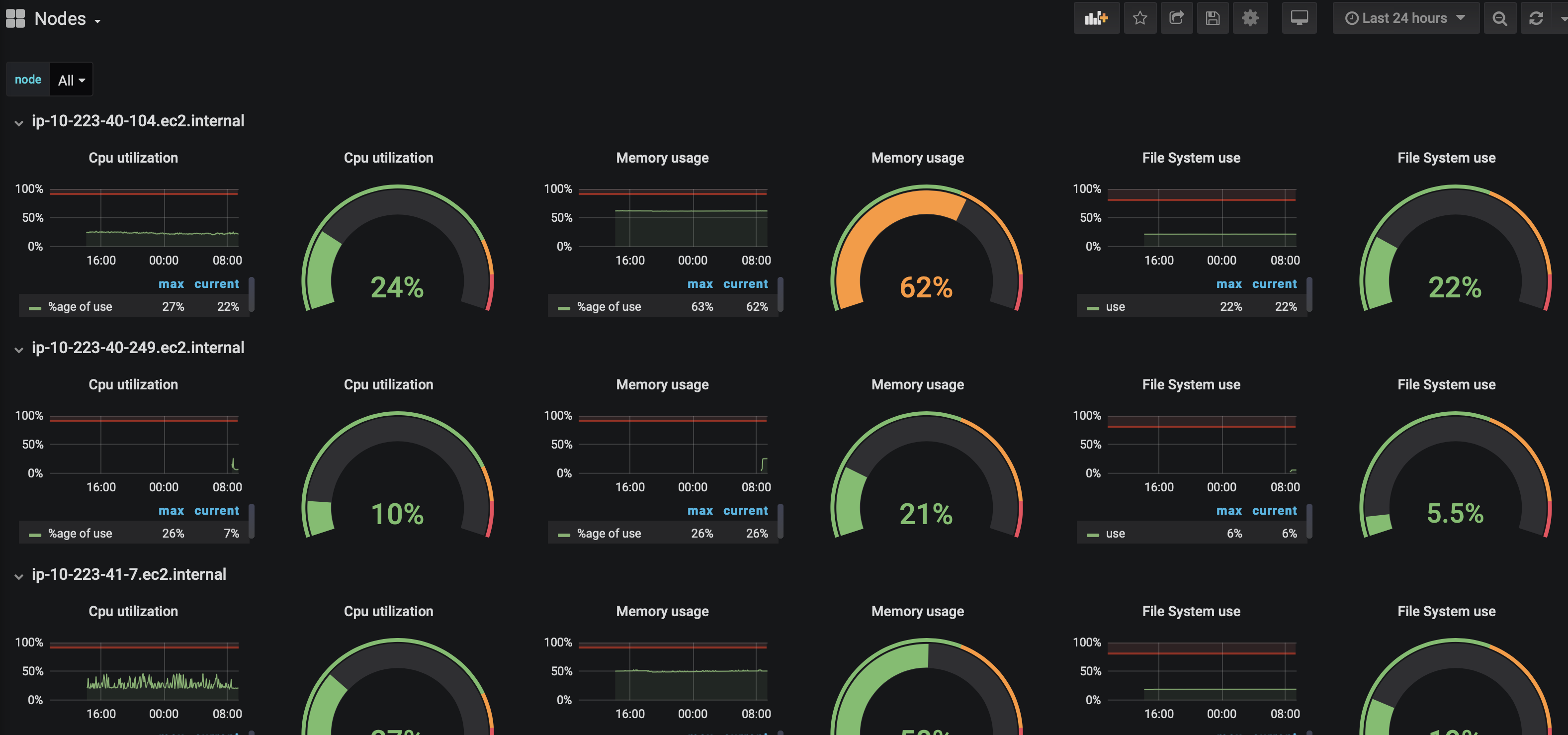 Automatically create a row by node, with percentage of cpu, memory and filesystem used.