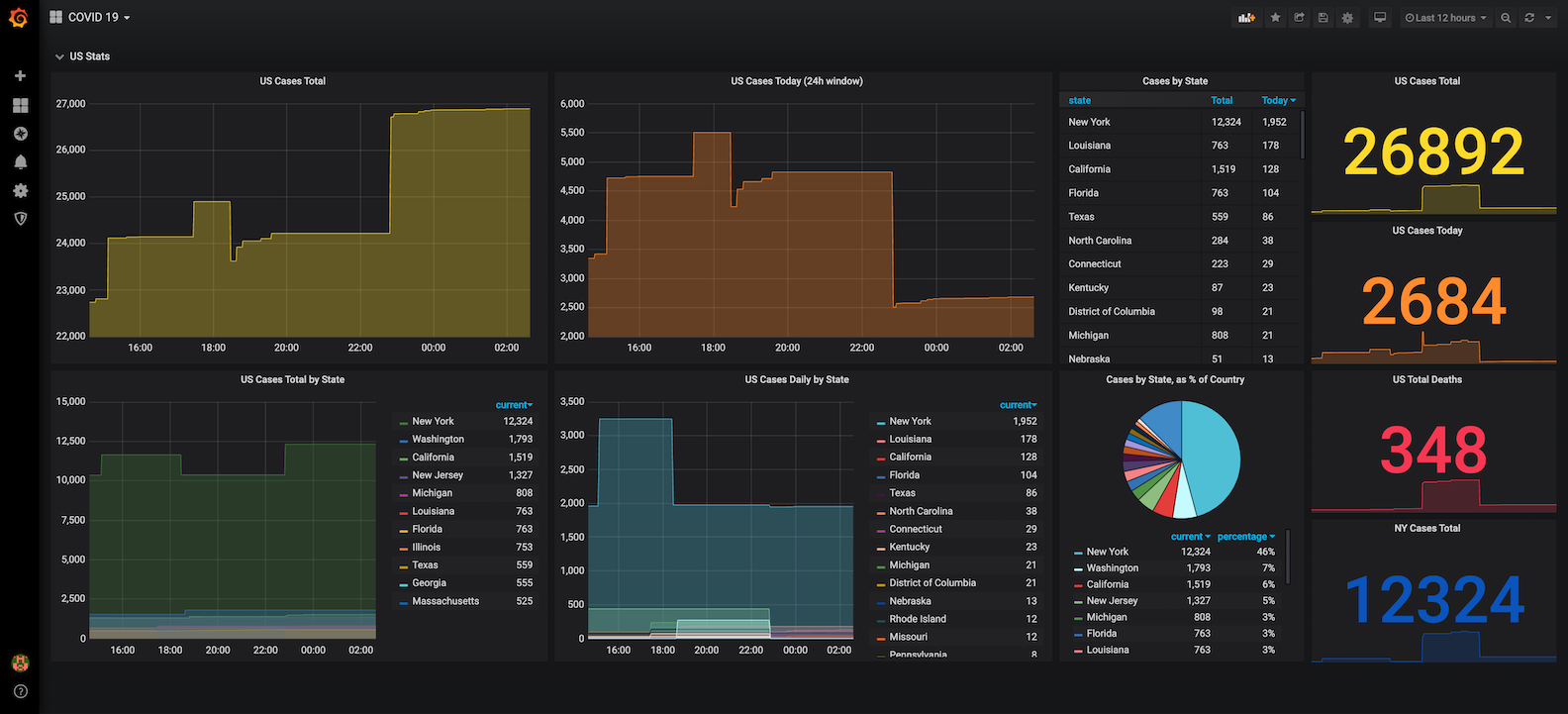 Dashboard tracking the spread of COVID-19 in the United States in realtime.