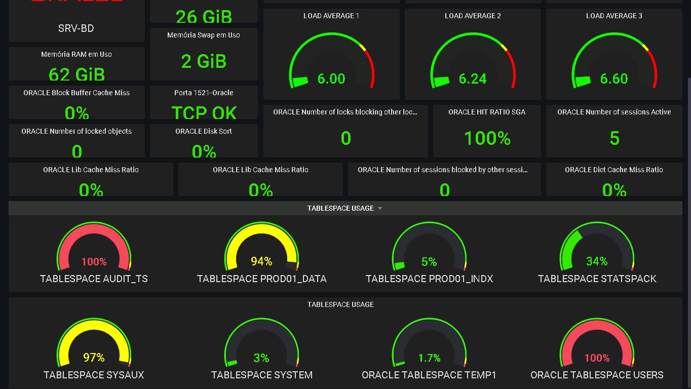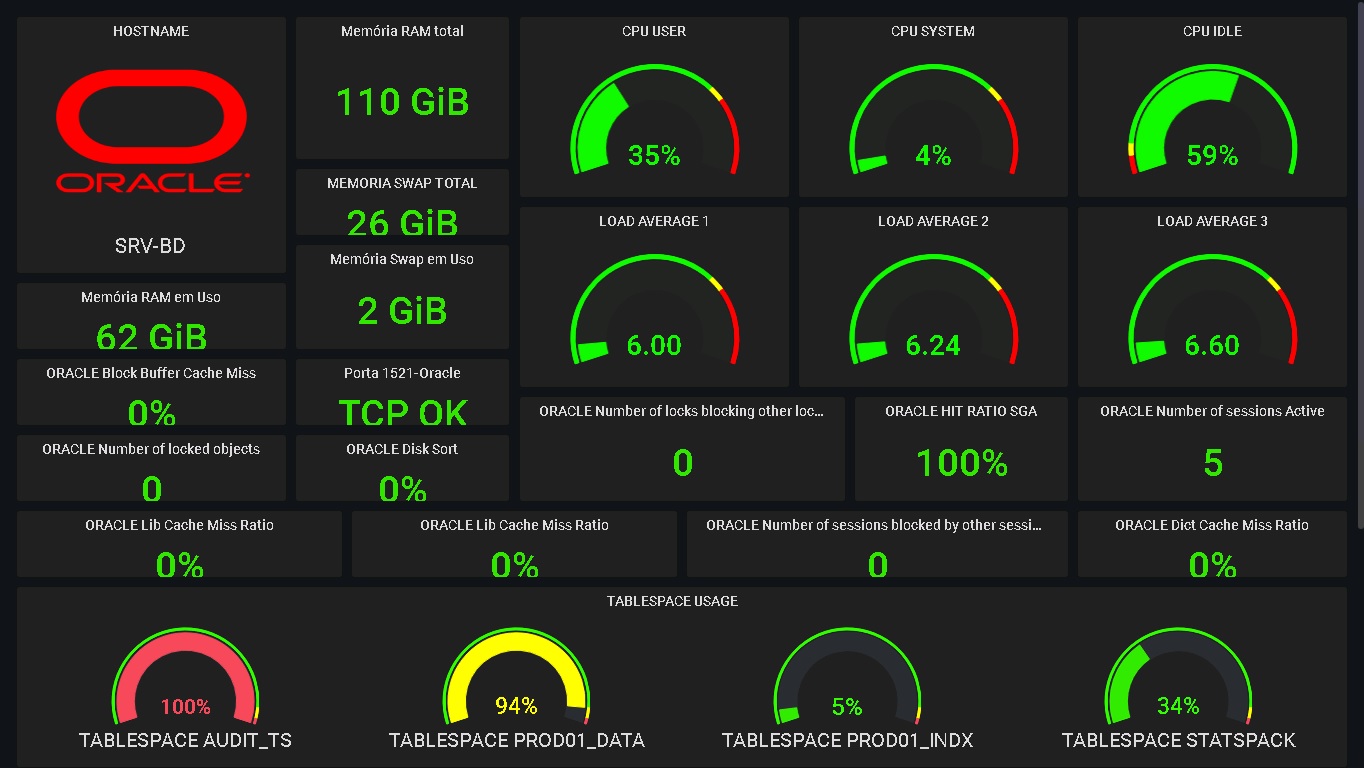 Painel baseado em informações coletadas do Nagios, para ambiente Oracle no Linux.