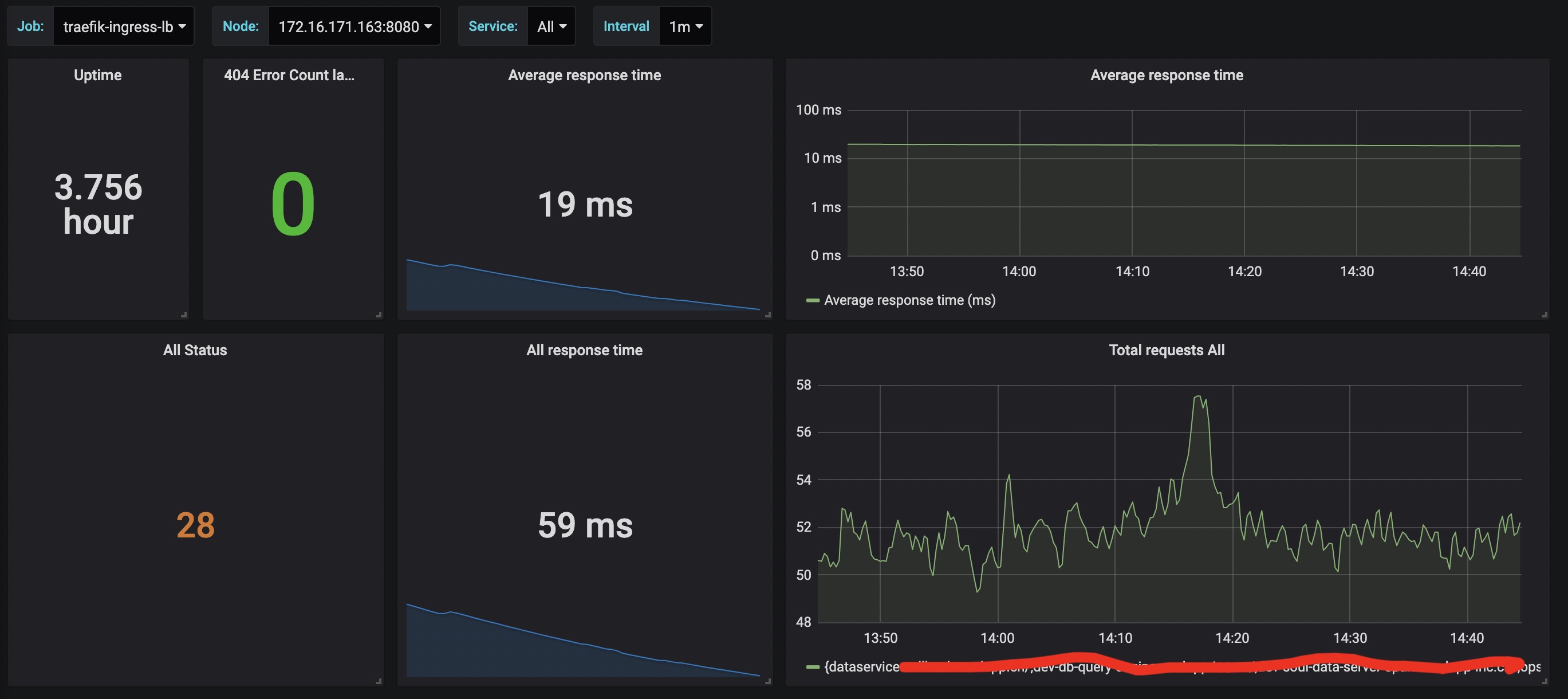 Traefik集群的整体状态监控,包含进程运行时间,整体请求和响应时间,以及状态码分布等基本情况以及各个后端的响应和运行情况。