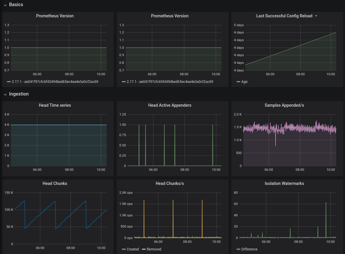 Metrics useful for benchmarking and loadtesting Prometheus itself. Designed primarily for Prometheus 2.17.x.