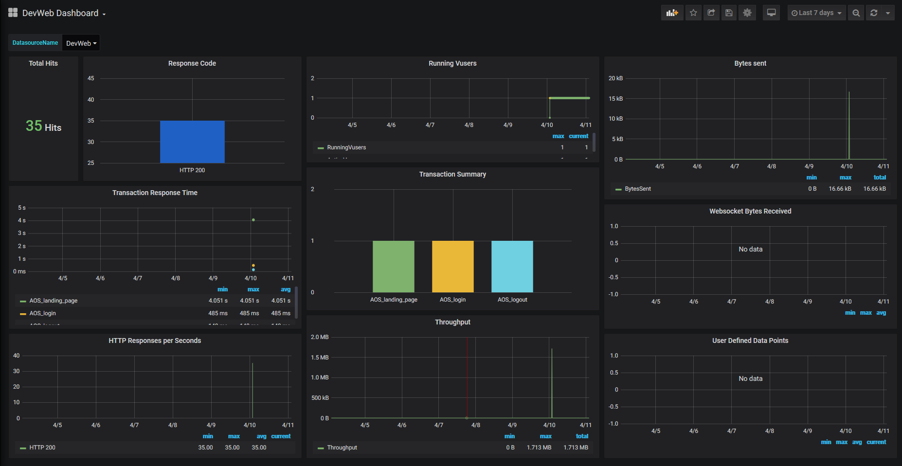 Inception version of LoadRunner Developer/DevWeb Dashboard.
