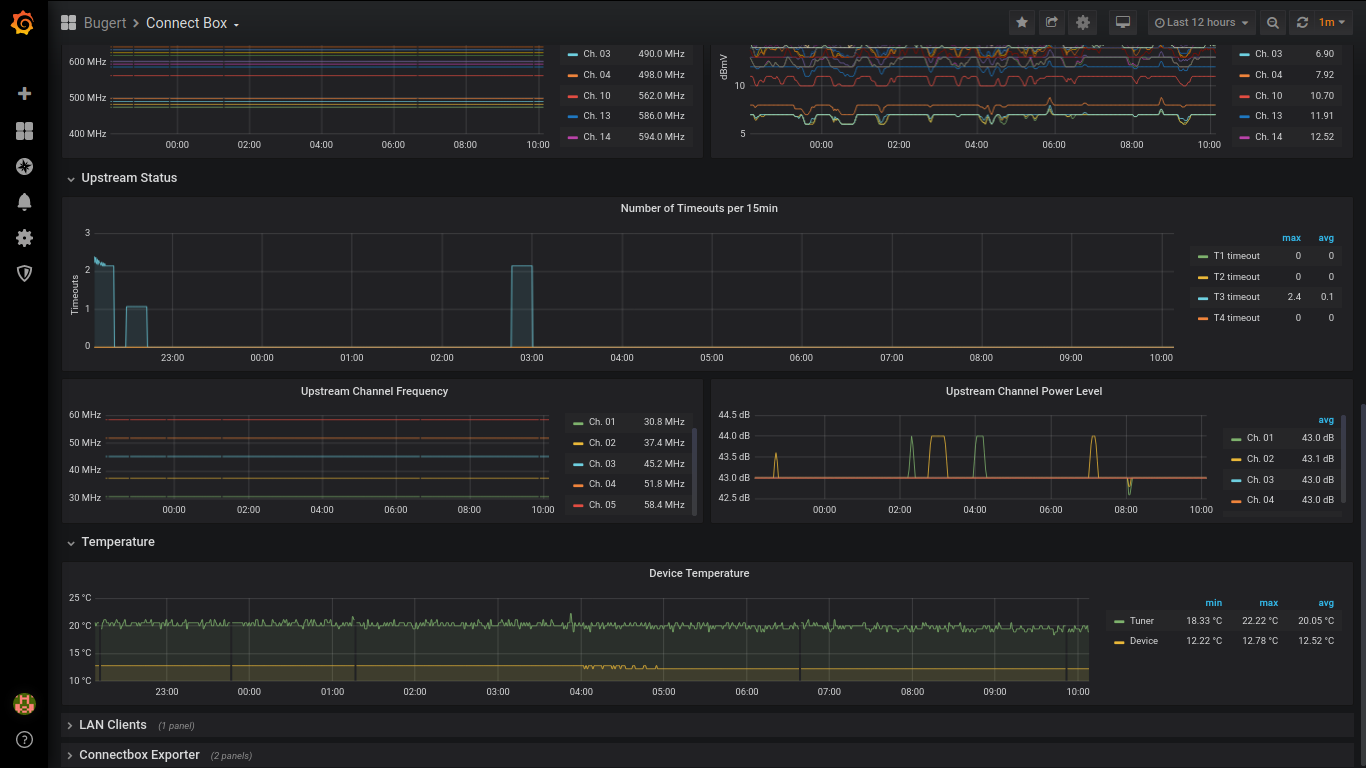 To use this dashboard, you need the connectbox-prometheus exporter: https://github.com/mbugert/connectbox-prometheus.