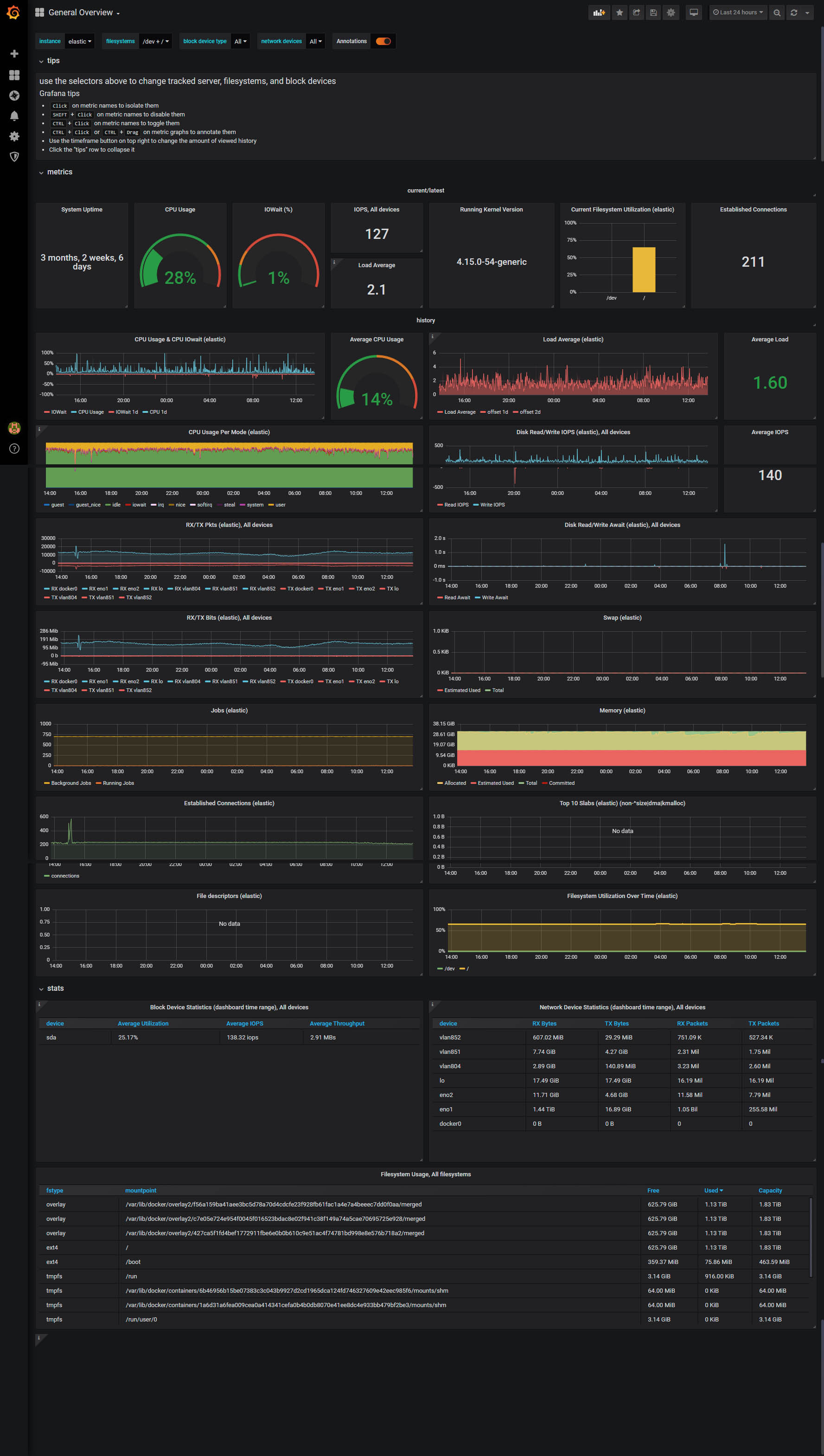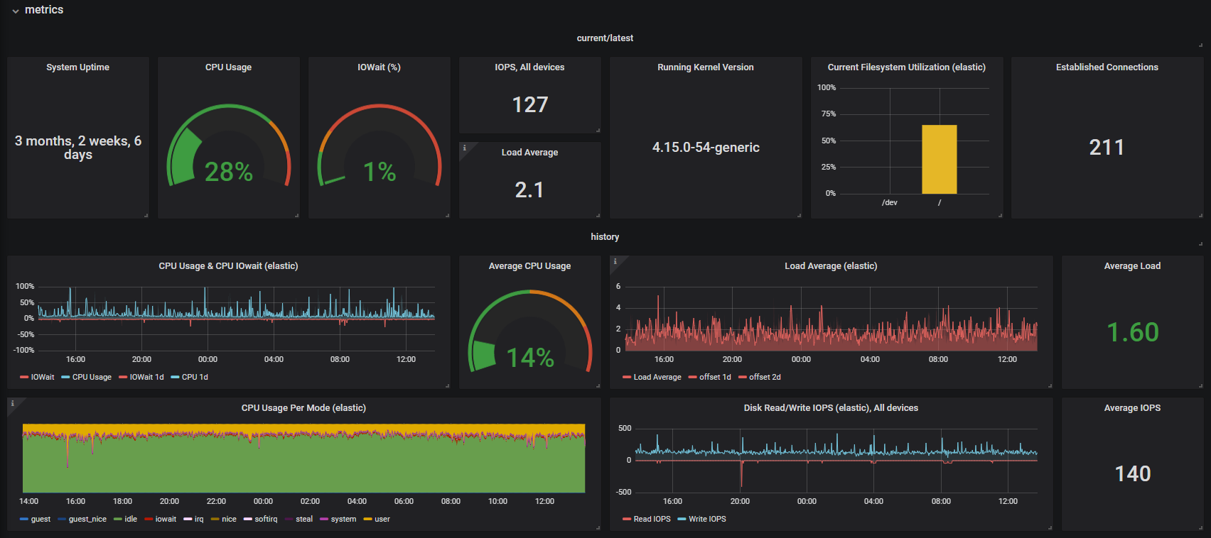 General server metrics view: CPU, Memory, Network, Disk usage