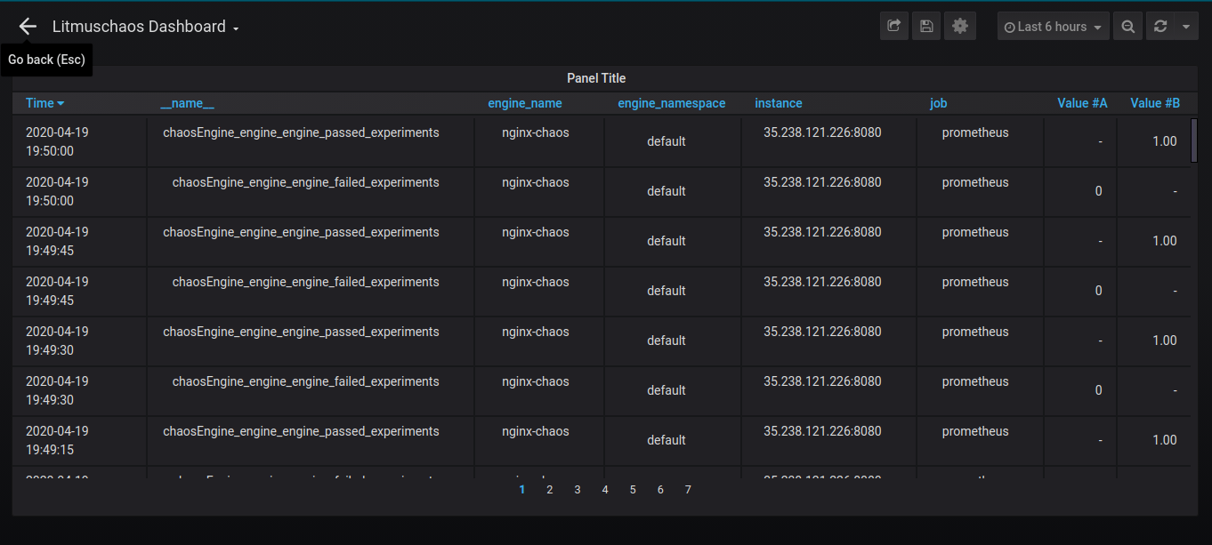 Litmus chaos grafana dashboard to show the chaos meterics