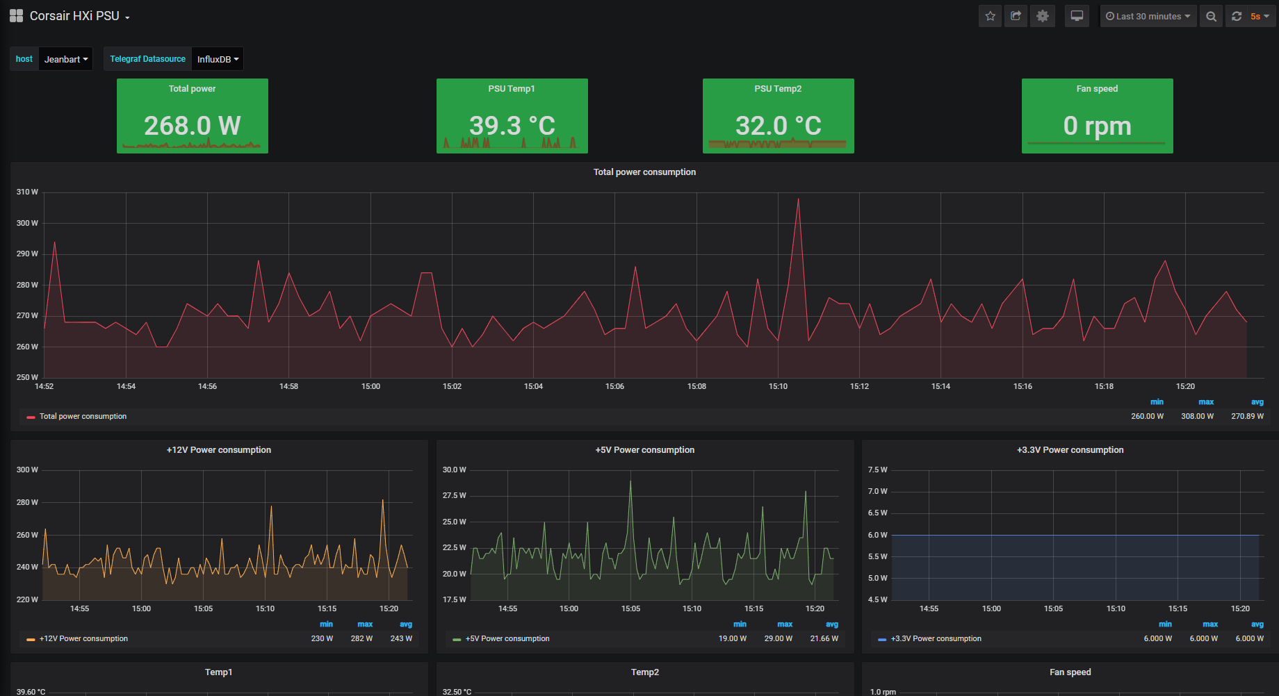 A modest dashboard to display metrics for Corsair RMi and HXi-series PSU.