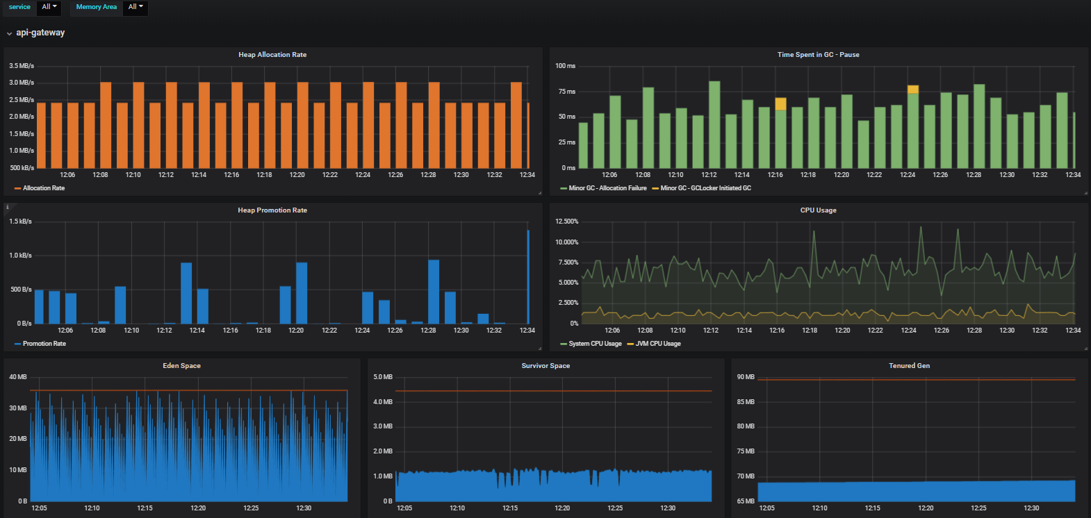 The GC Details dashboard uses the prometheus data source to create a Grafana dashboard with the graph panel.