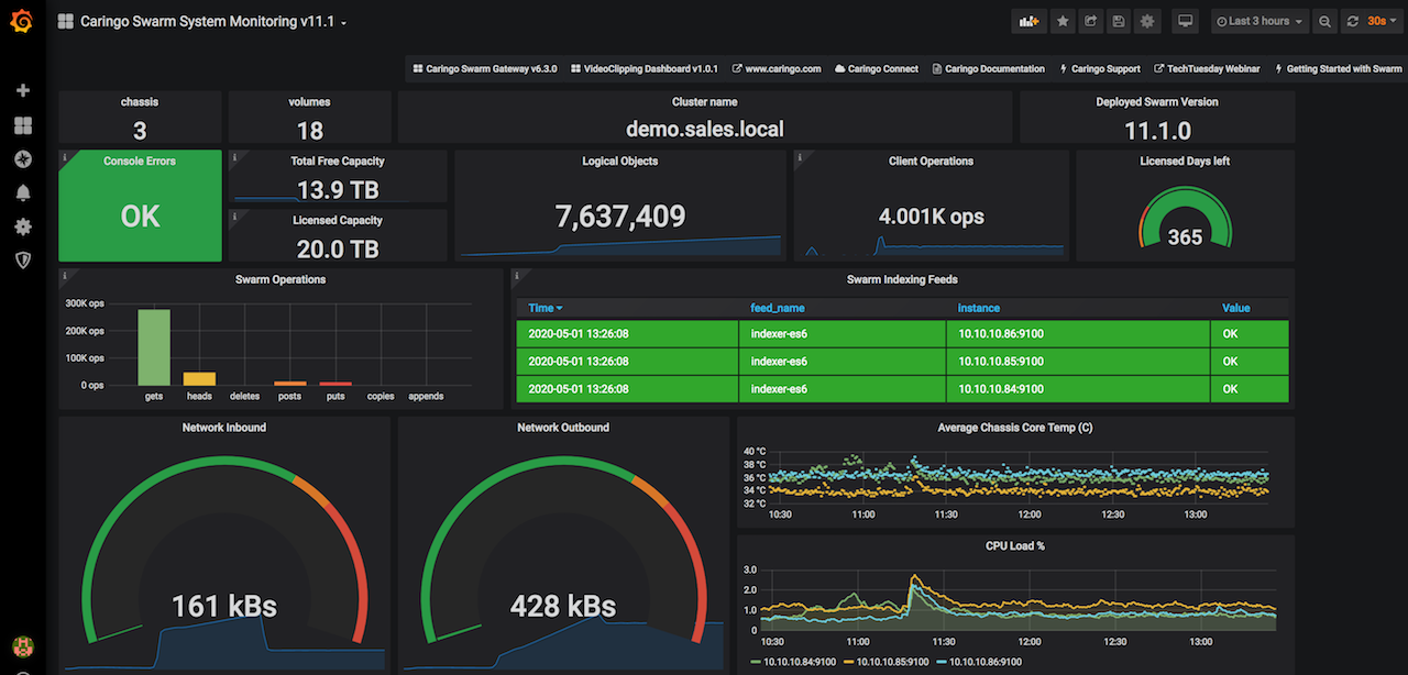 Example Dashboard to monitor Caringo Swarm v11 and higher