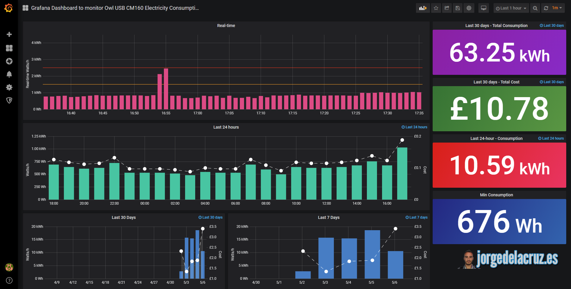 Grafana Dashboard to monitor Owl USB CM160 Electricity Consumption