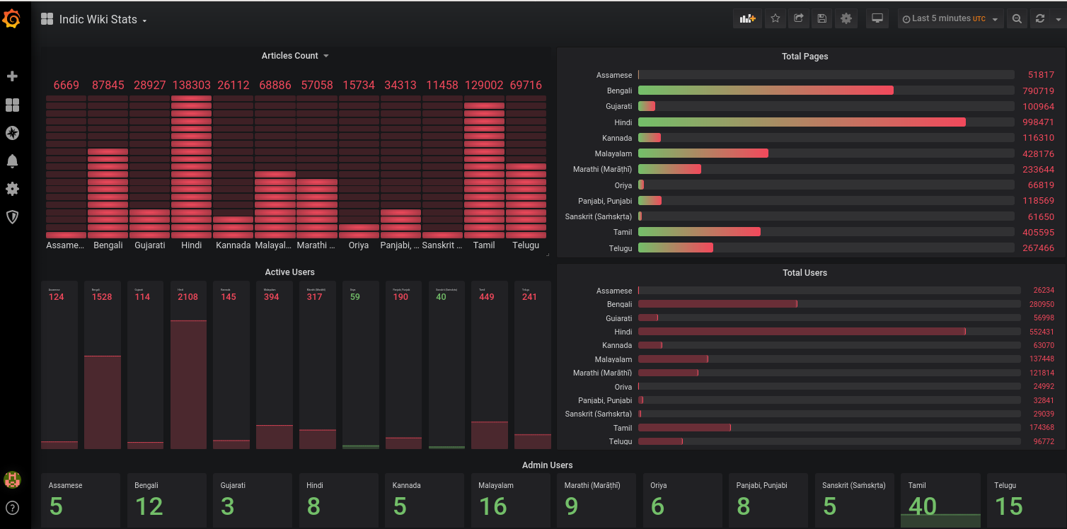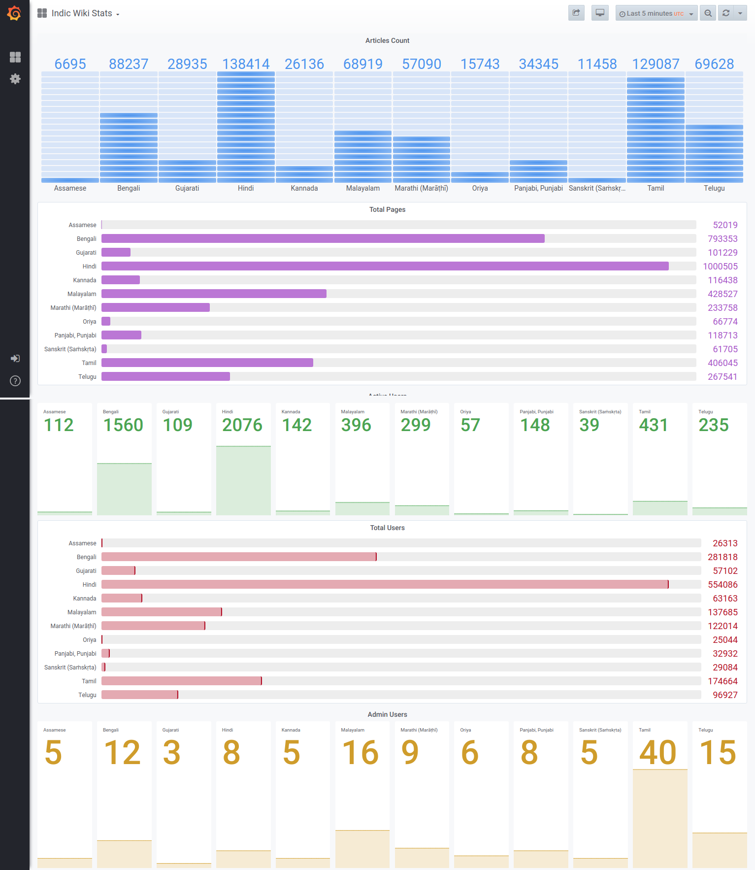 This is a dashboard for the indic wikipedia stats exporter. Exporter source is here - https://github.com/tshrinivasan/indicwiki_stats_exporter