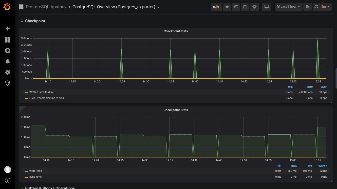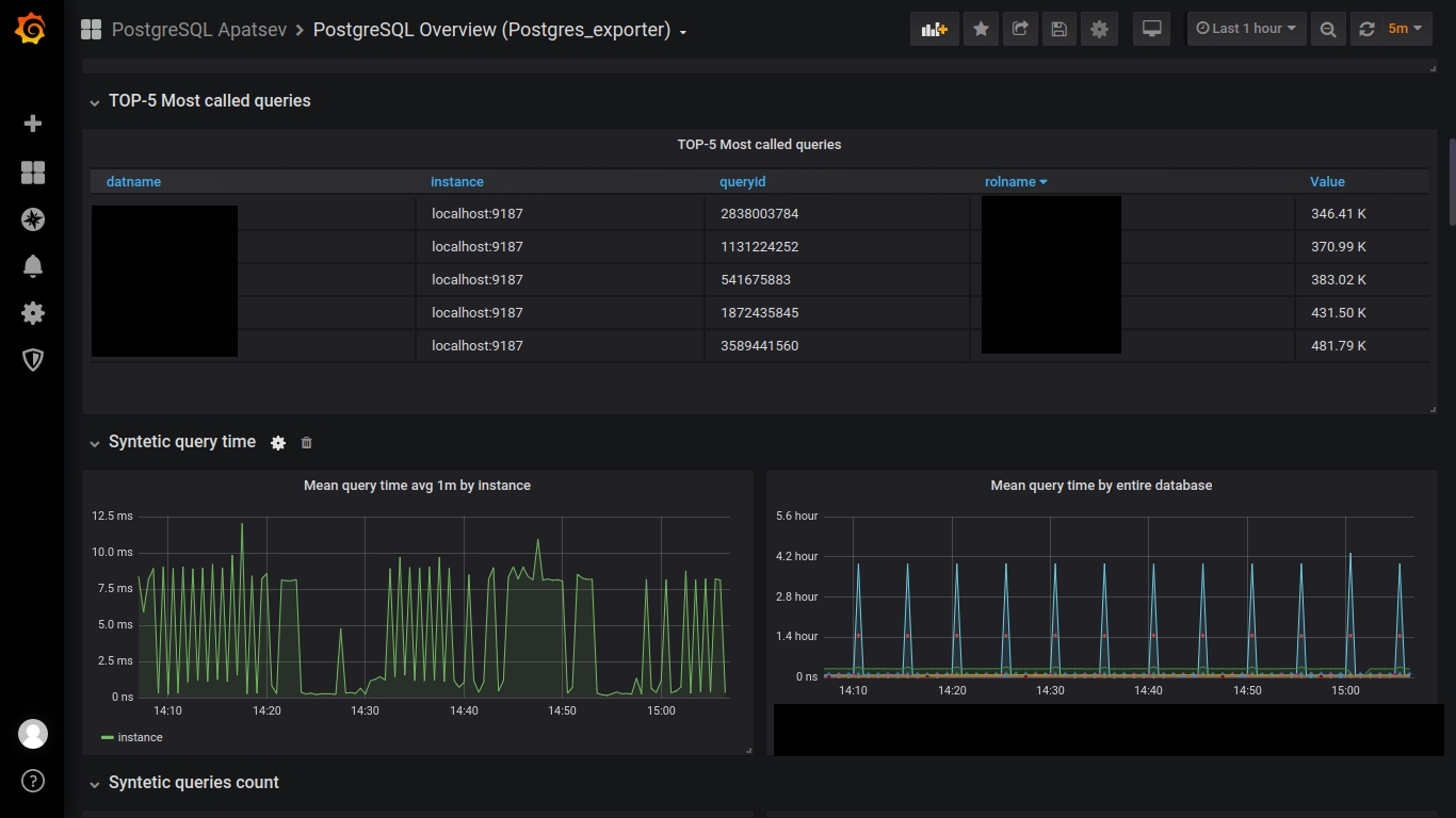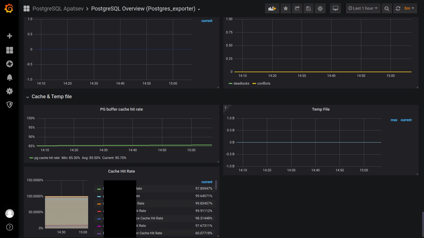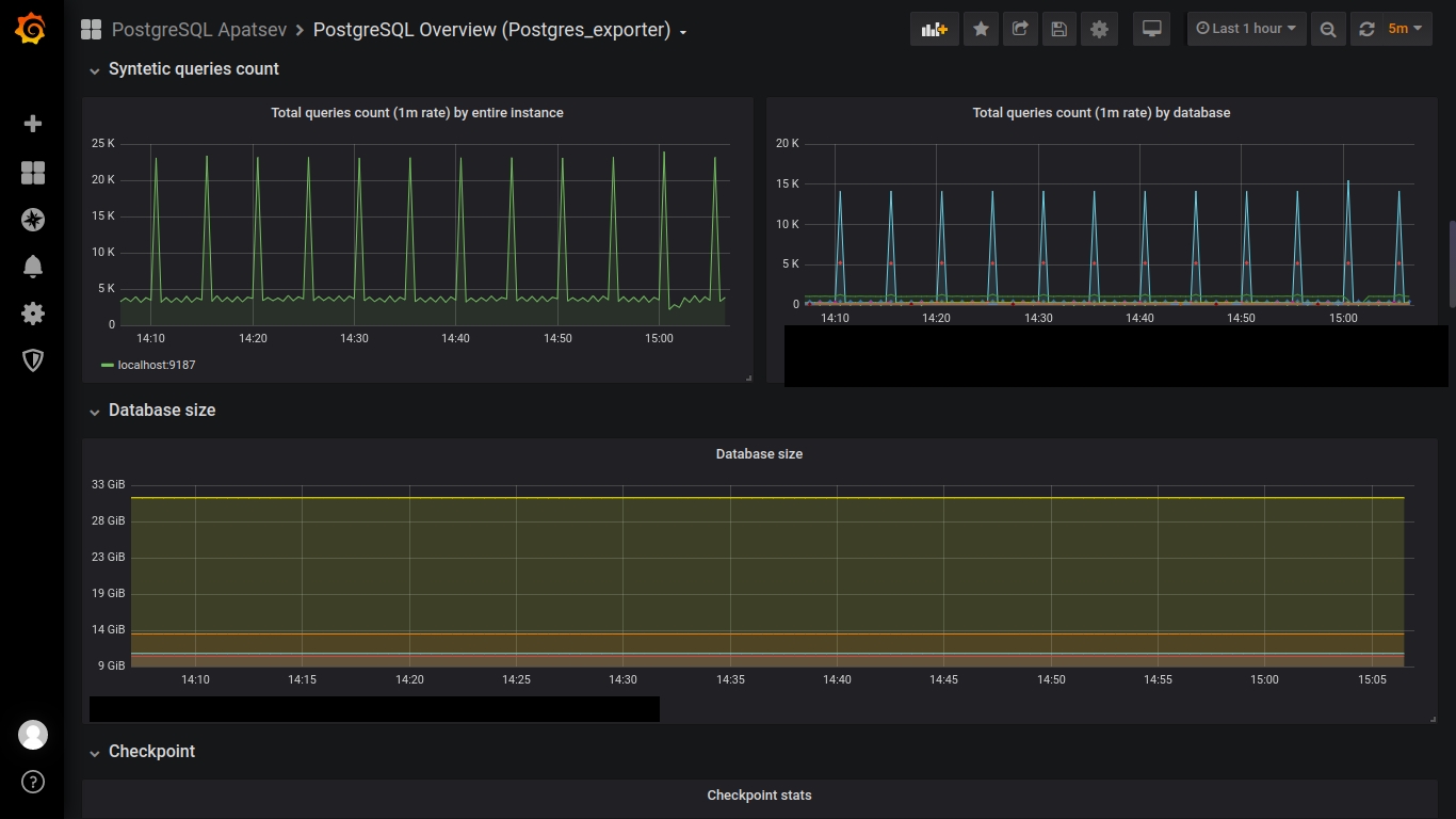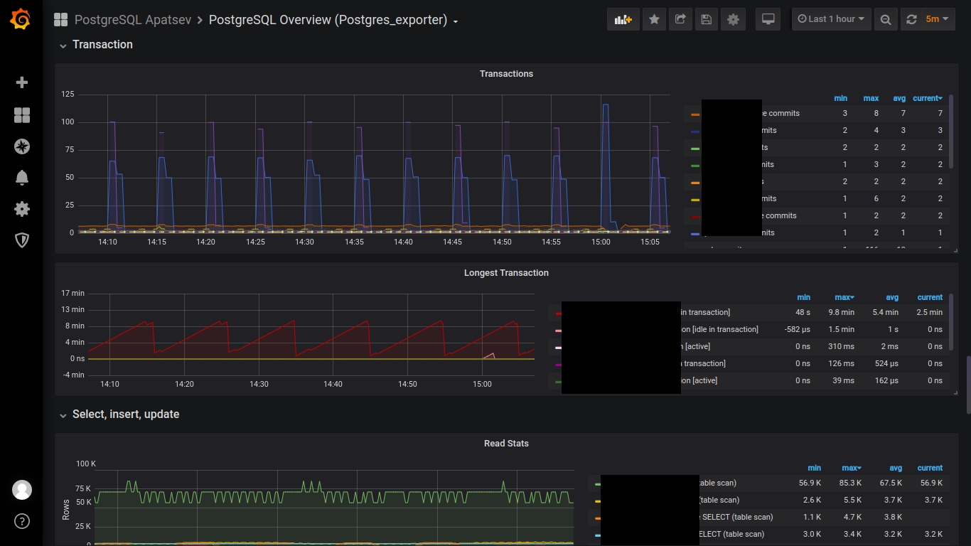 This dashboard works with postgres_exporter for prometheus