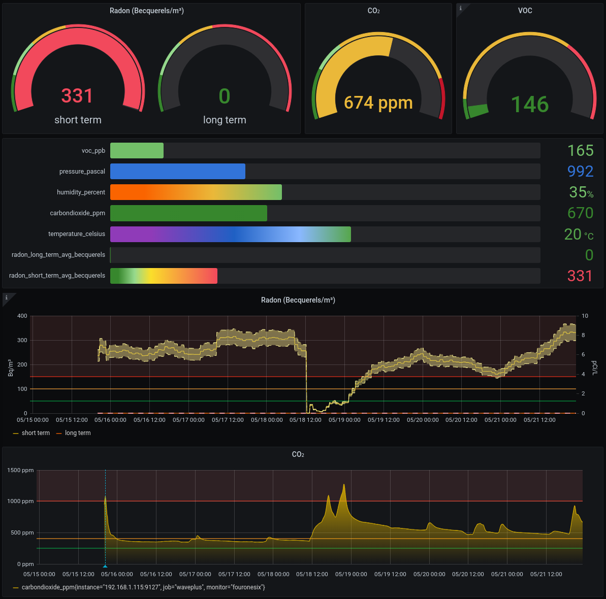 Dashboard for the (unofficial) Airthings Waveplus exporter