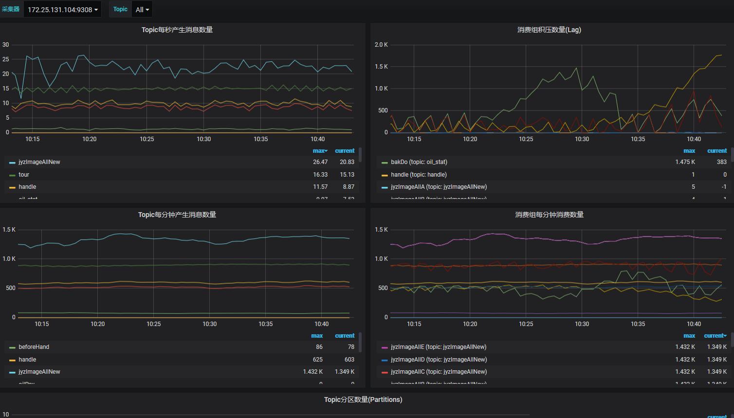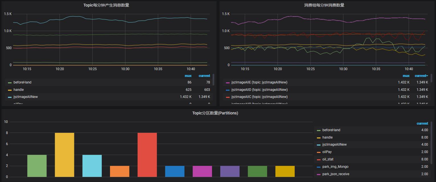 The Kafka详情 dashboard uses the prometheus data source to create a Grafana dashboard with the graph panel.