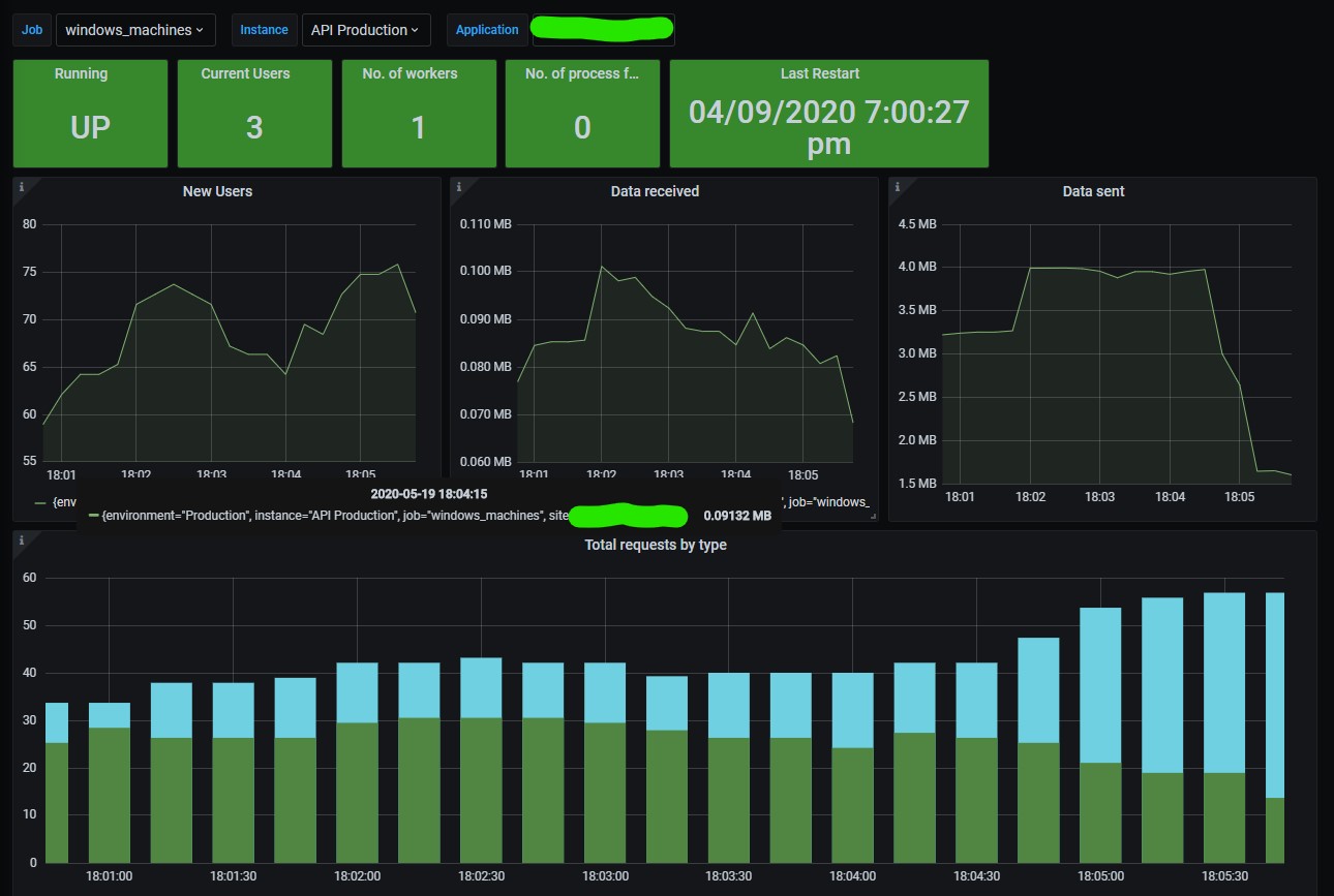 This is a dashboard that will show you some IIS metrics derived from wmi_exporter. Tested and works with version 0.11.1 of wmi_exporter. When installing it you must specify that you want IIS metrics included, they aren't by default.