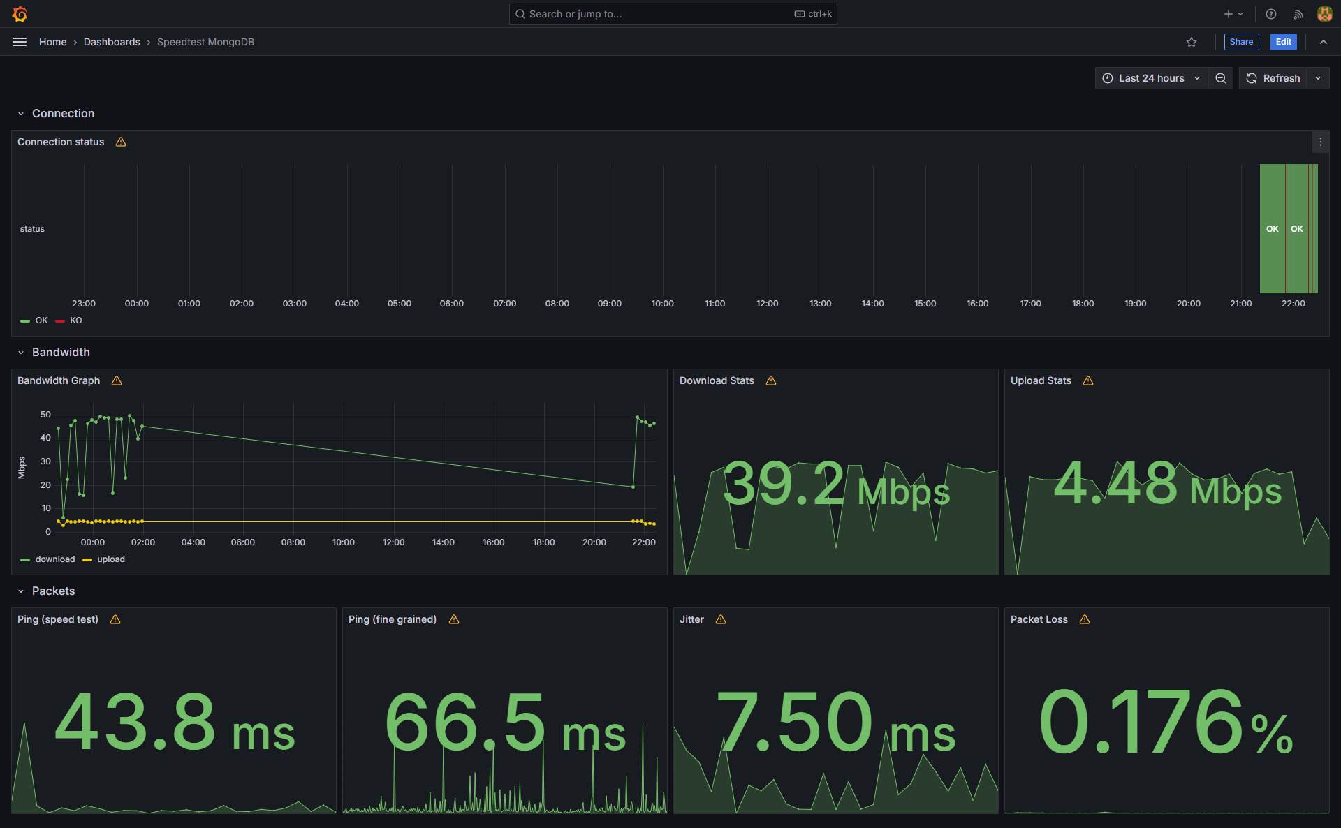 Visualize speedtest-cli (by Ookla) data in MongoDB