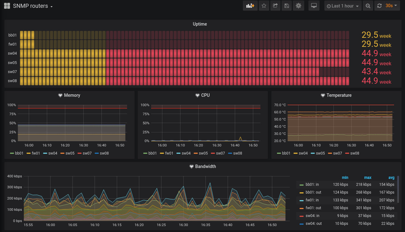 Easily monitor any generic SNMP (Simple Network Management Protocol) device with Grafana Cloud's out-of-the-box monitoring solution.