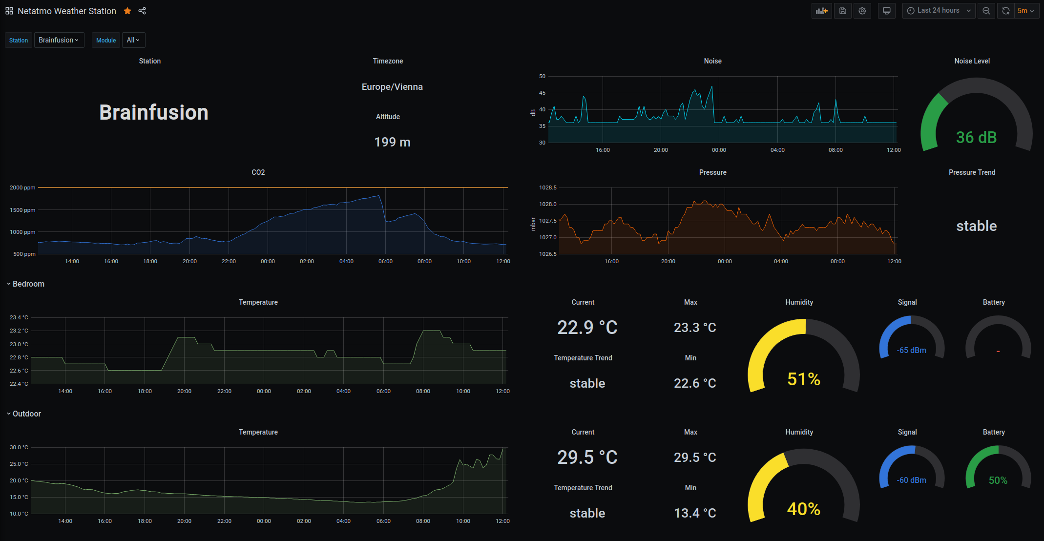 The data is collected via Netatmo's API using a simple python script running as a cron job.