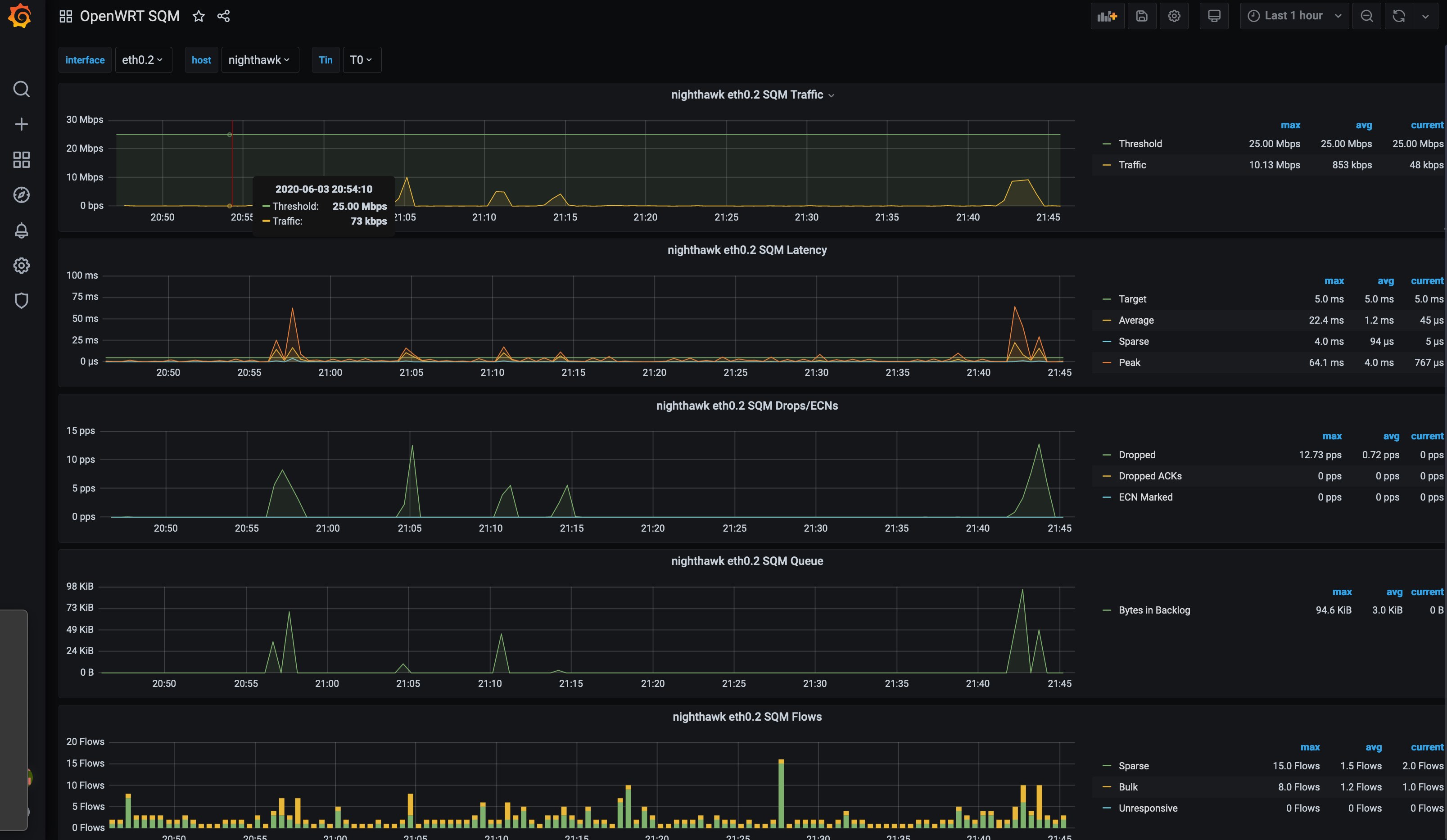 Quick dashboard for monitoring OpenWRT SQM values collected by collectd as described on https://forum.openwrt.org/t/sqm-reporting/