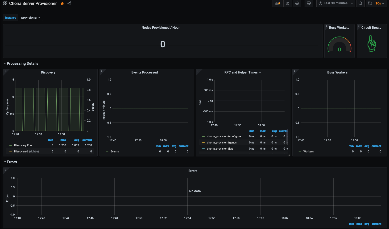 Shows detail about the node provisioning process produced by Provisioning Agent when monitor_port is set to a value greater than 0. Metrics are exposed on /metrics