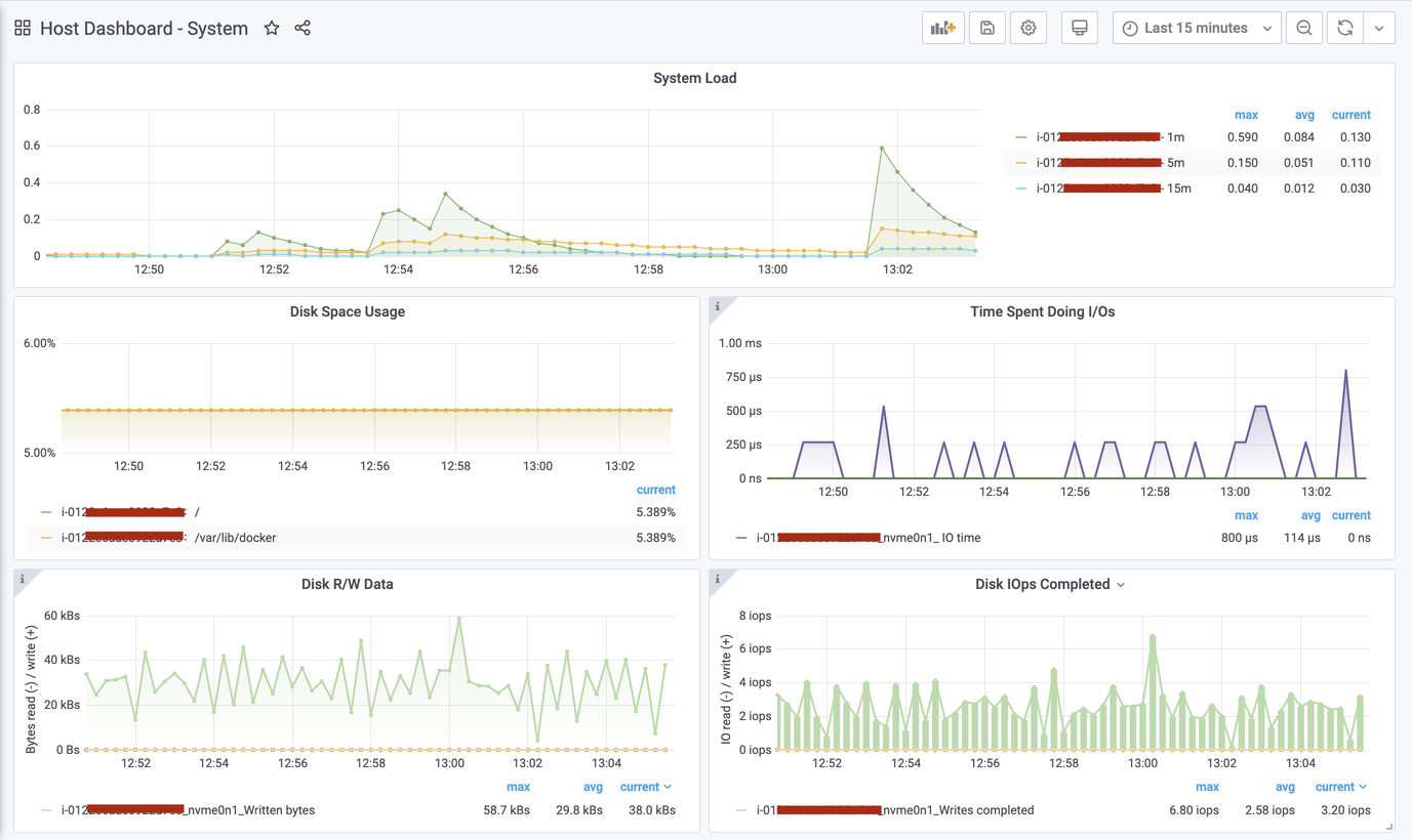 Display Includes: CPU, memory, disk IO, network and other monitoring metrics。