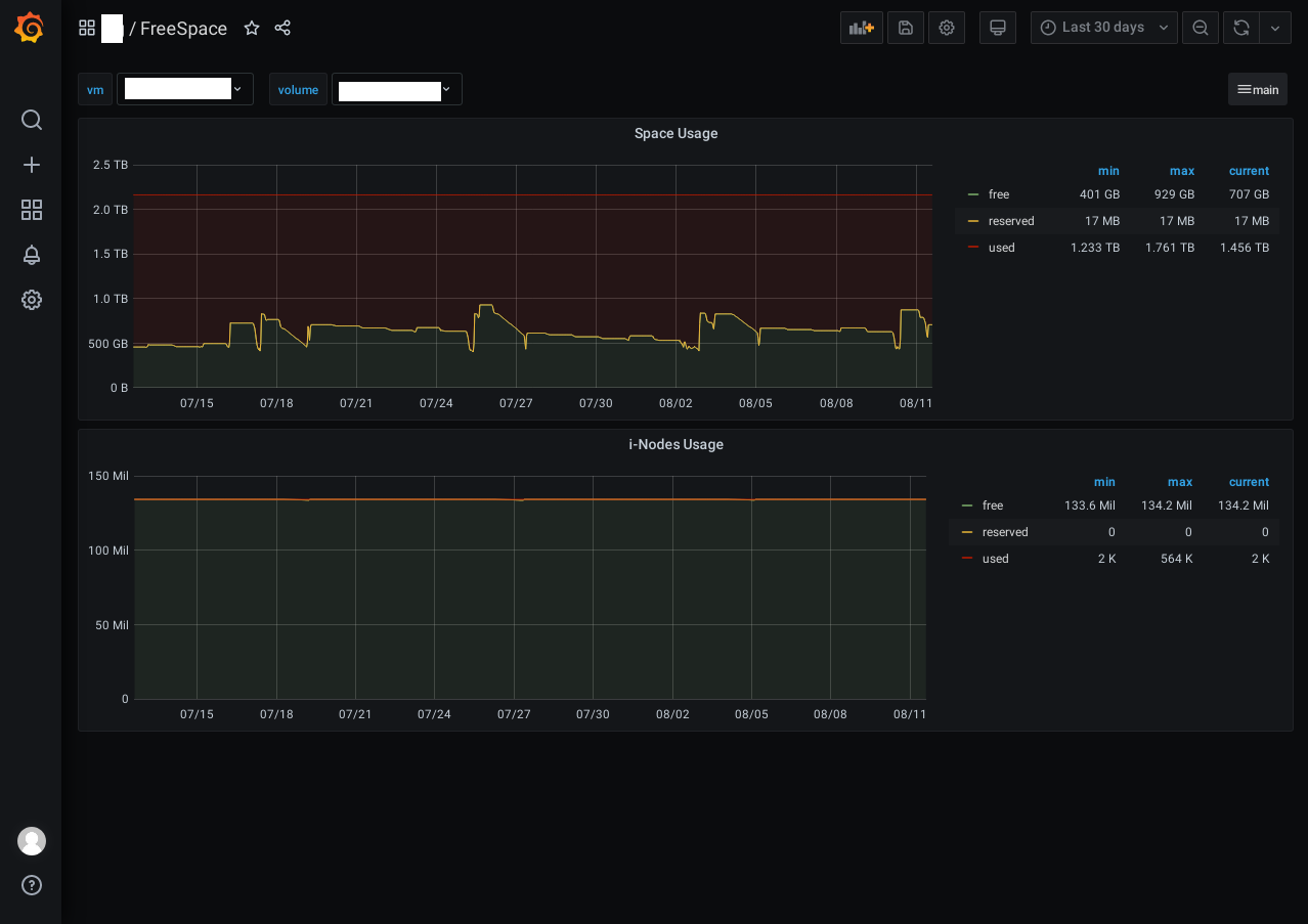 Dashboard file system space and inodes usage