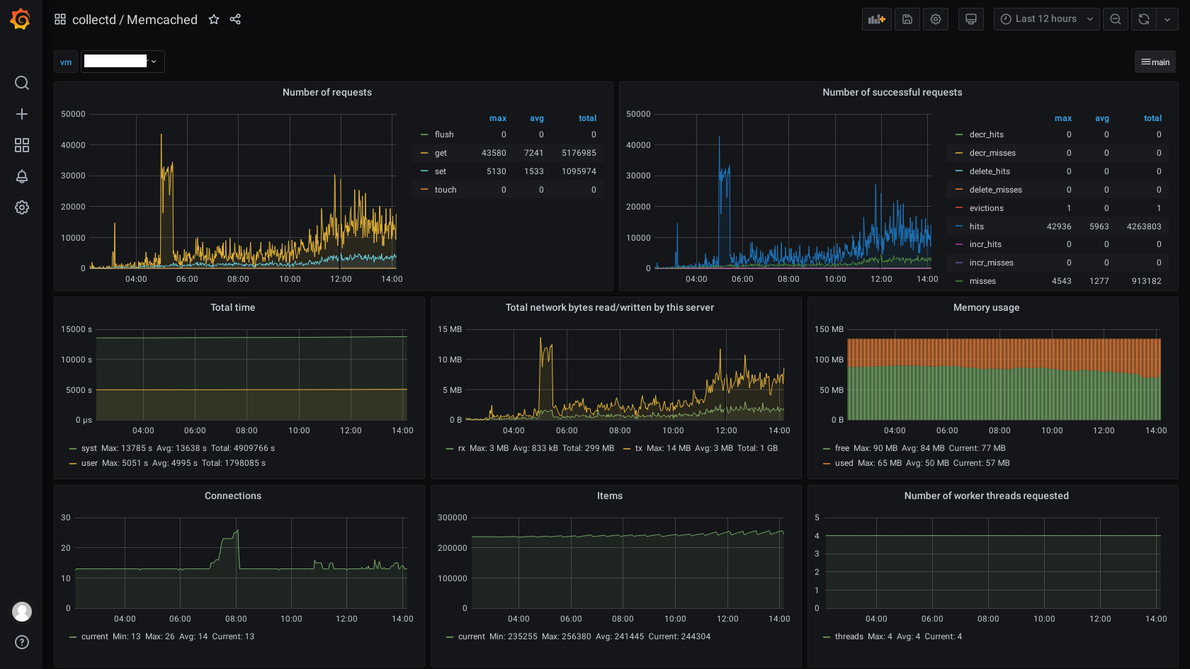 Dashboard memcached usage