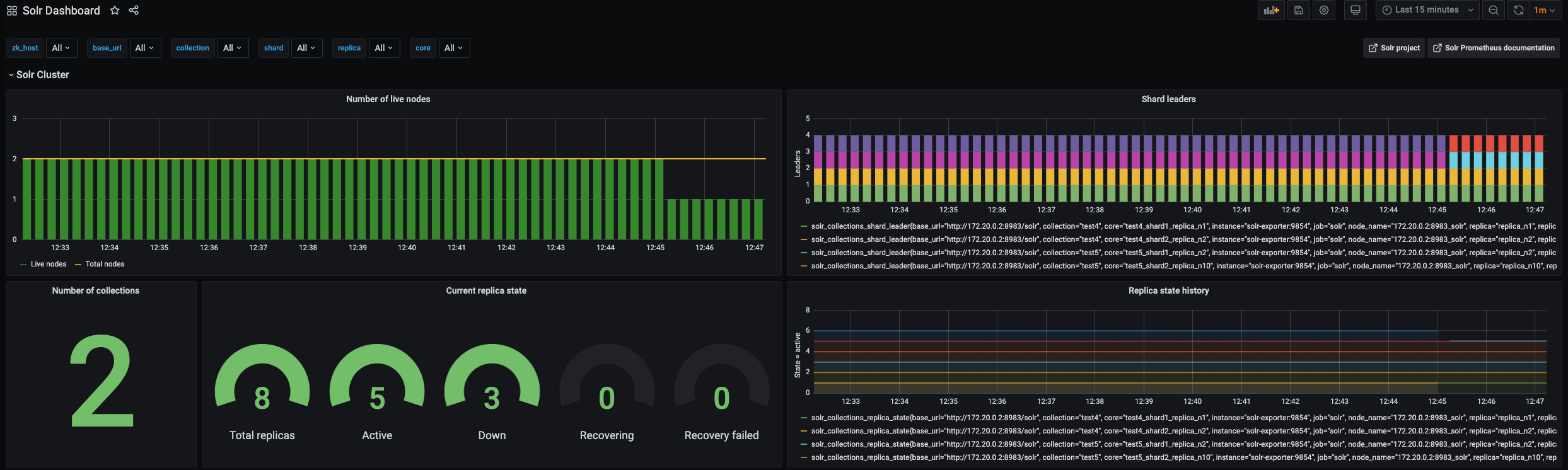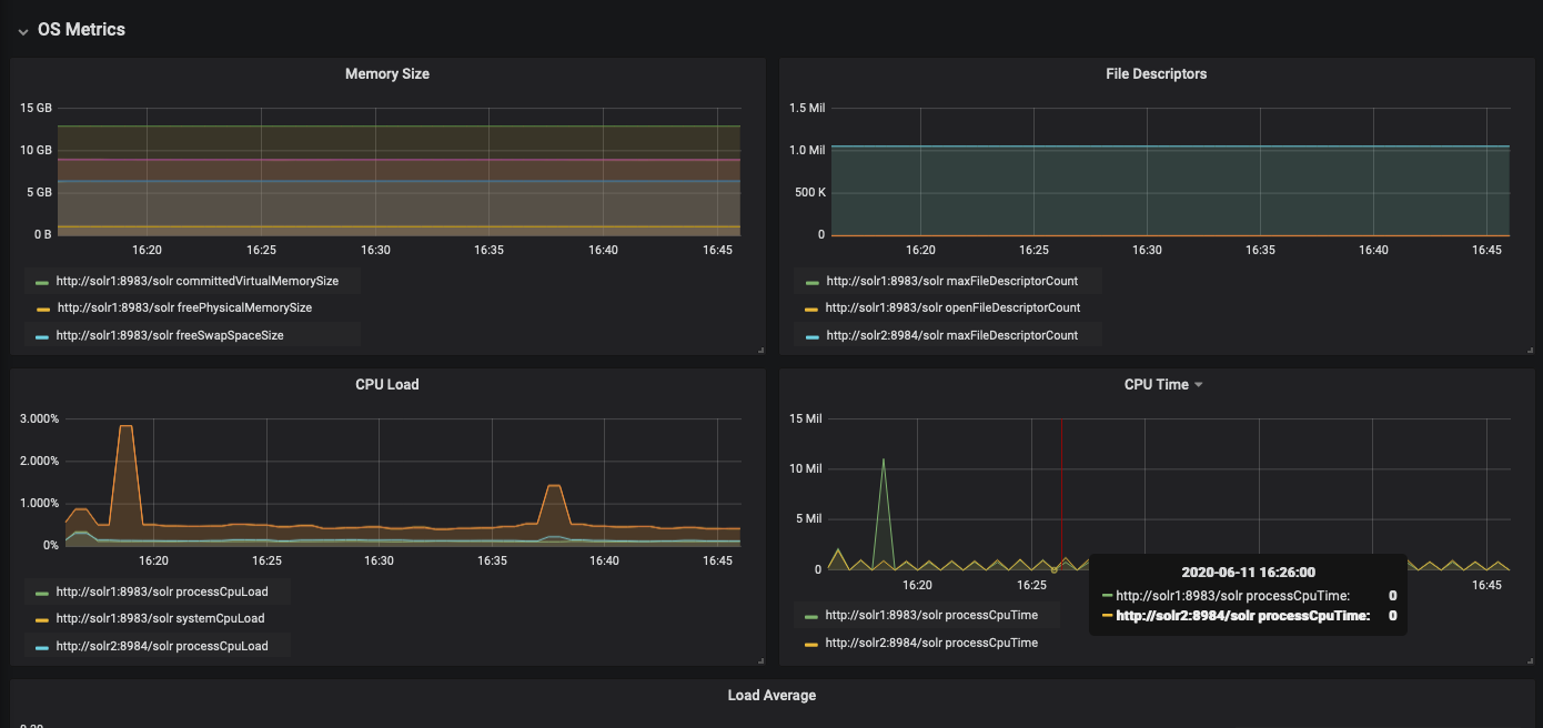- October 2020 version: Now the collection, shard, replica, core dropdowns on top actually filter the graphs!