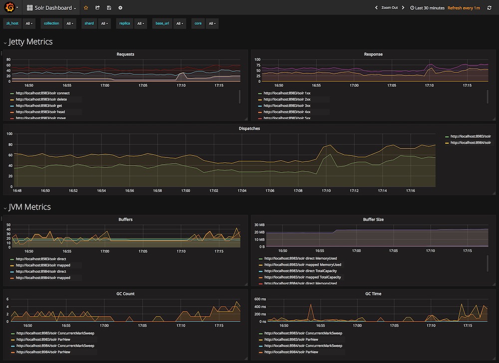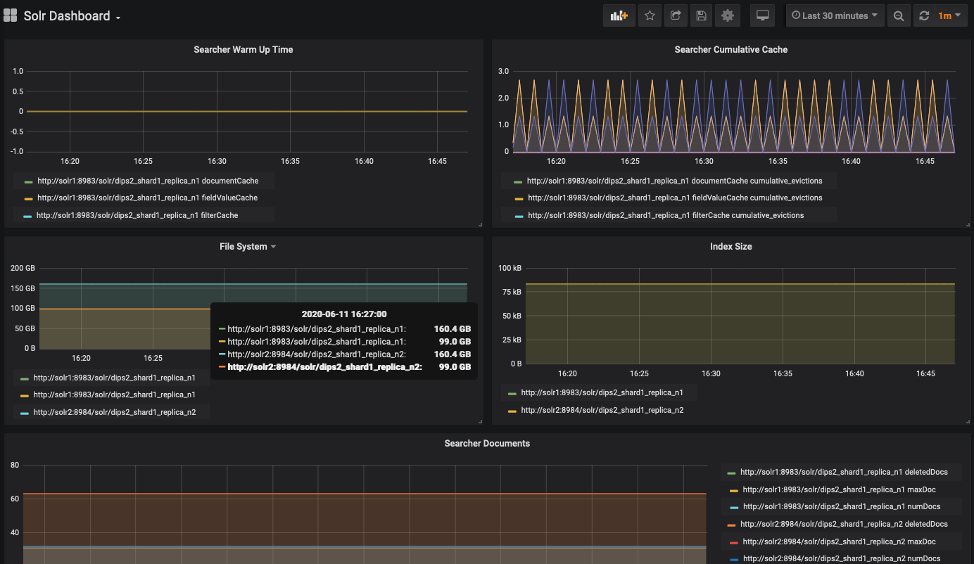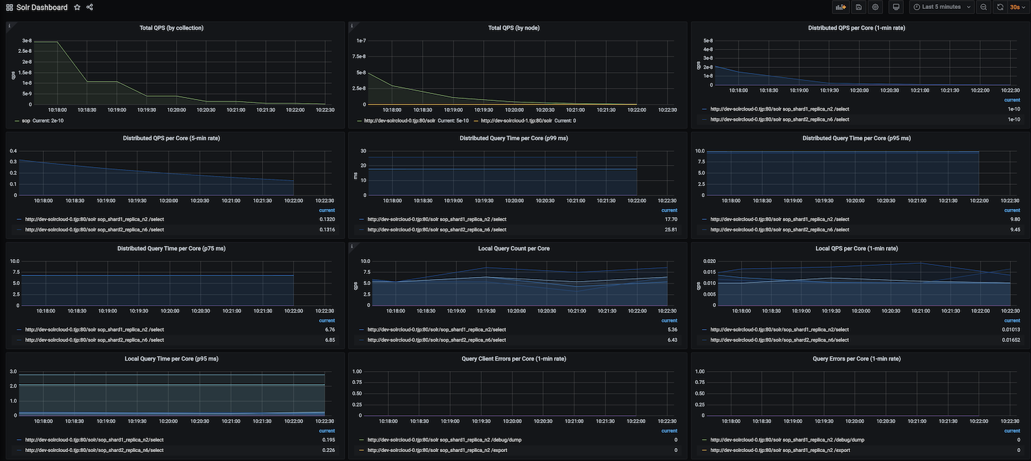 - January 2021: New Query metrics row, showing QPS metrics per collection (requires solr-exporter 8.8 or later)