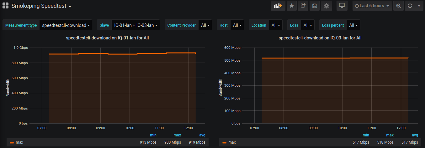 Graph Speedtest measurements done by Smokeping and exported to InfluxDB