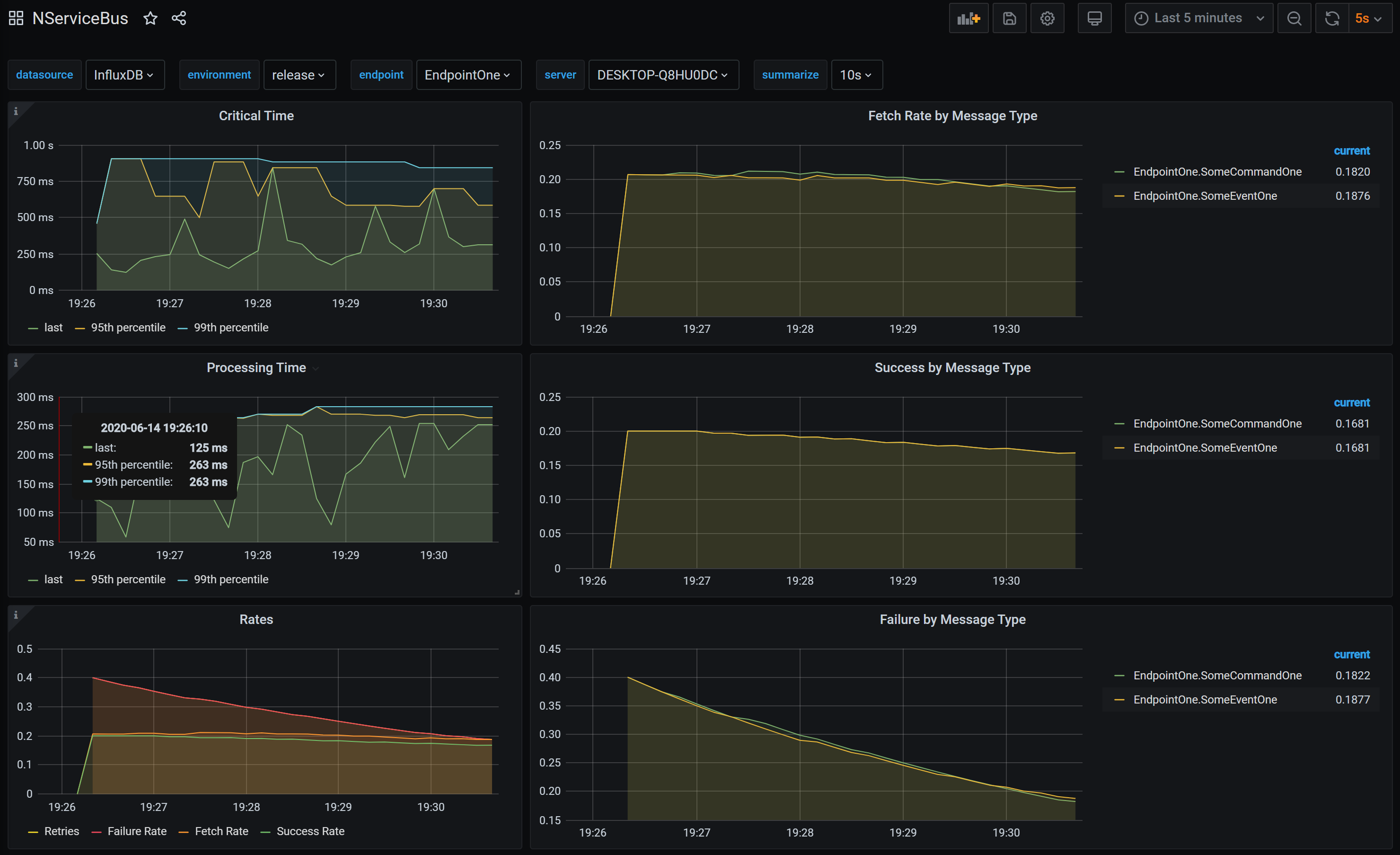 NServiceBus dasbboard using App Metrics InfluxDB reporter