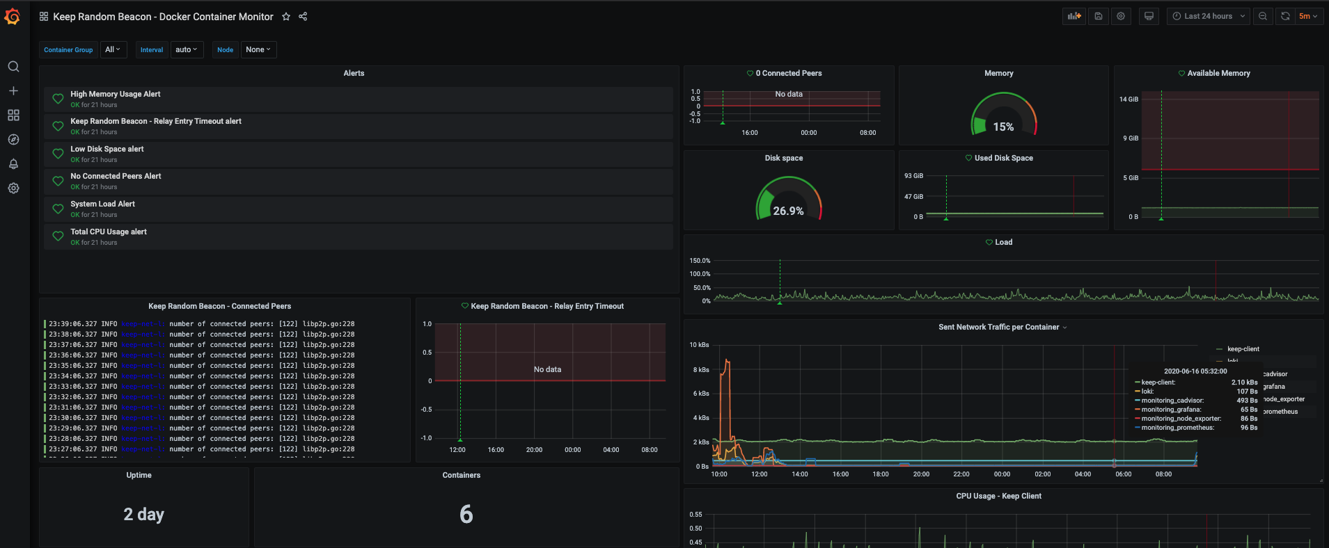 A dashboard for server stats, logs and alerts for a Keep Random Beacon client. (Loki/cAdvisor/Prometheus)