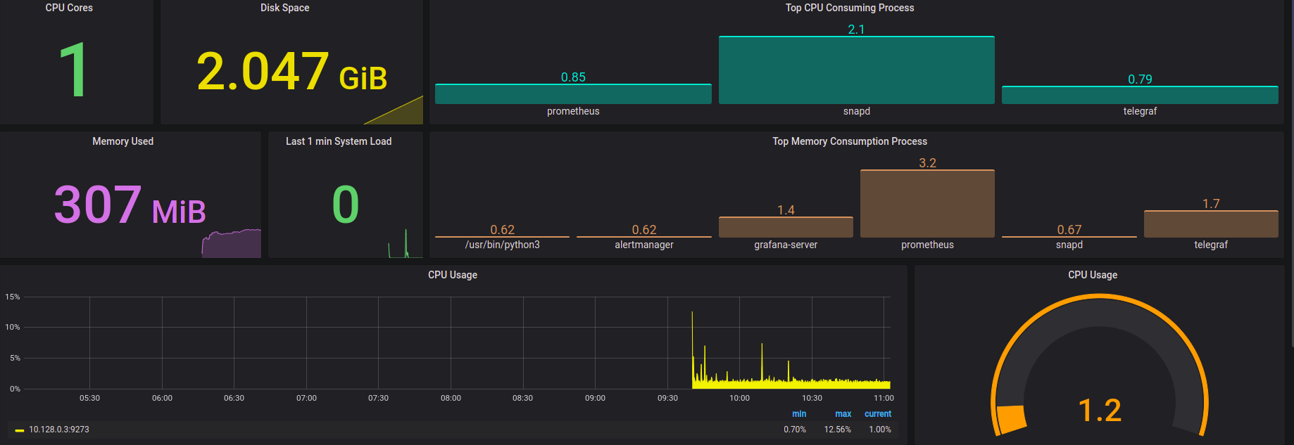 - Last 1 min System Load.