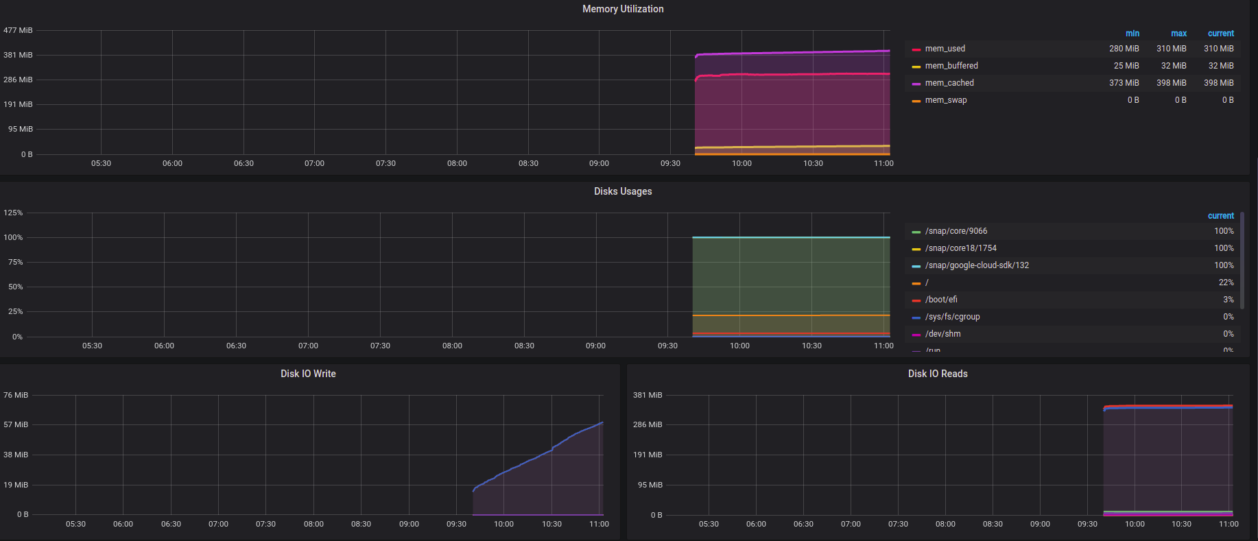 - Disk Space usages on each mount point.