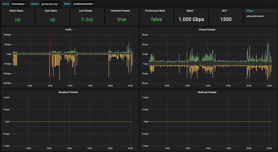 Select a single interface and get detailed graphs from snmp exporter - traffic, unicast/multicast/broadcast packets, errors and discards