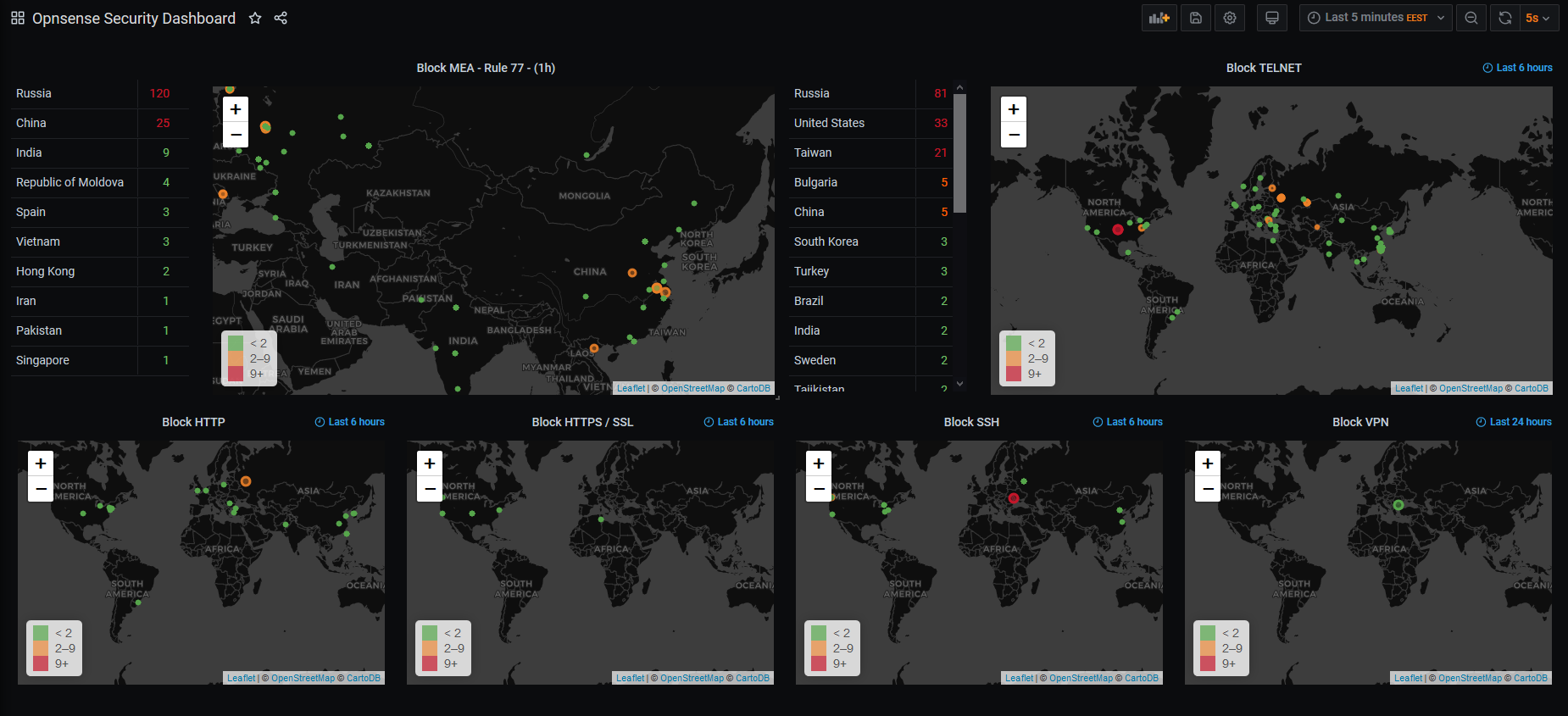 Thought I share this amateurishly done Security Dashboard for Opnsense (Maps only).