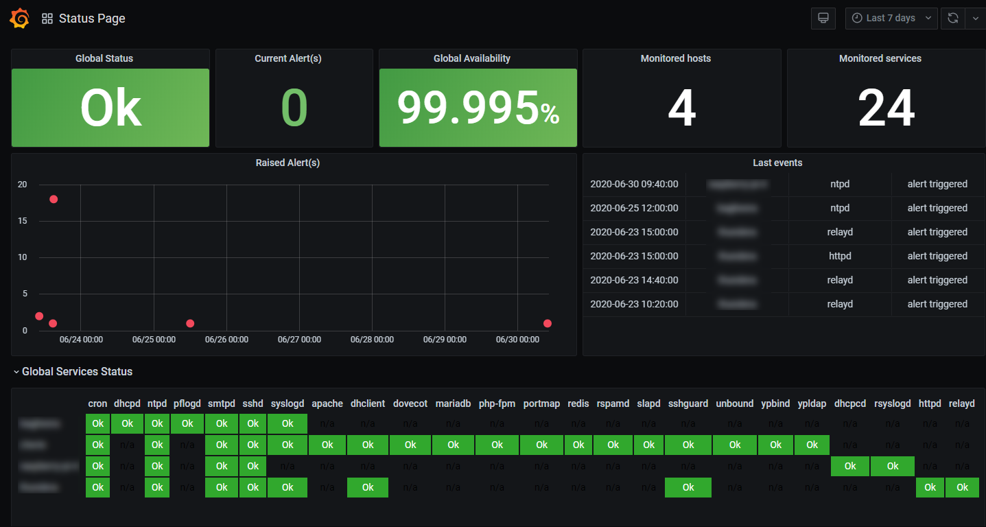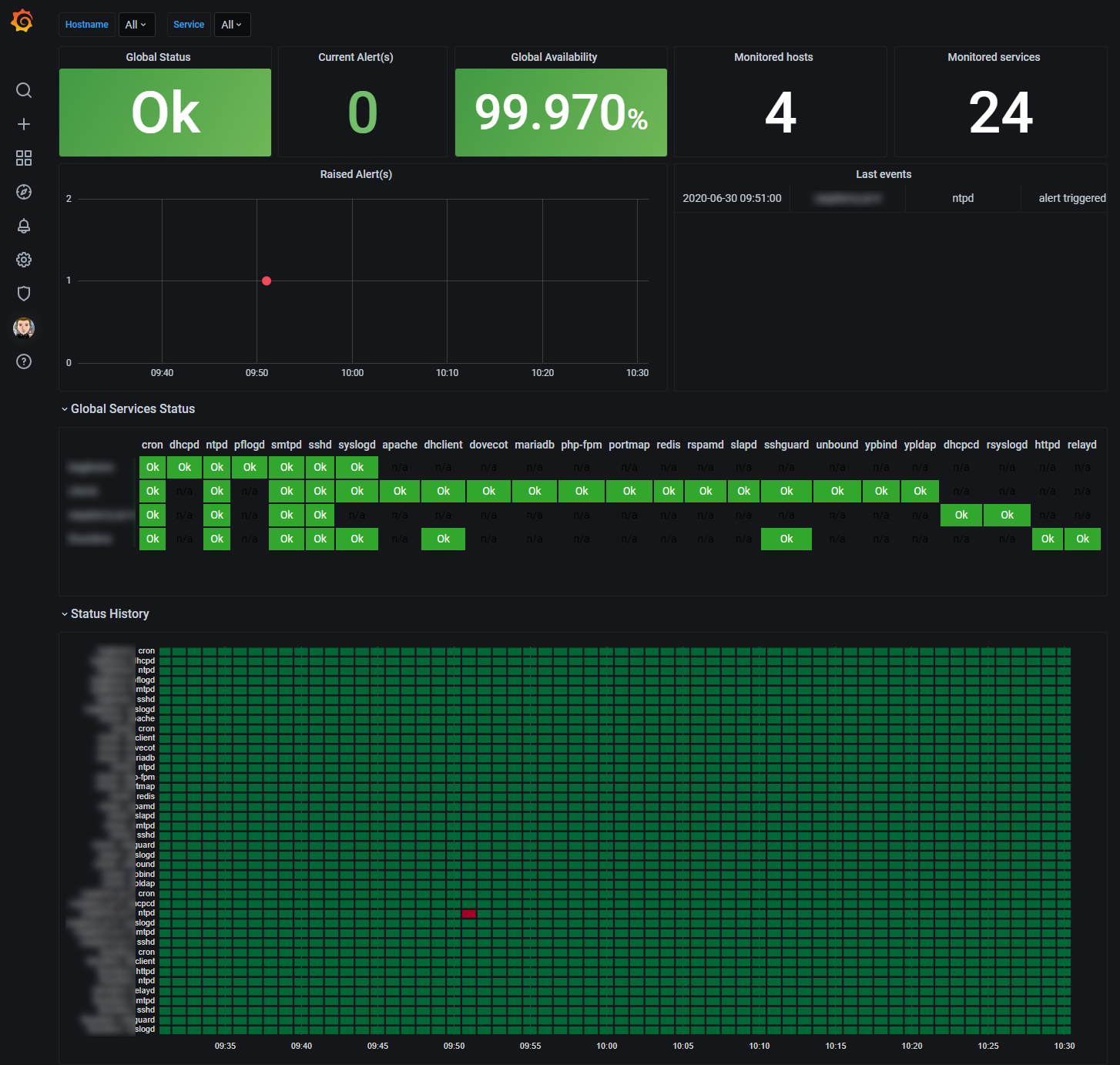 I'm using collectd, influxdb and grafana to keep an eye on my (non) running processes.