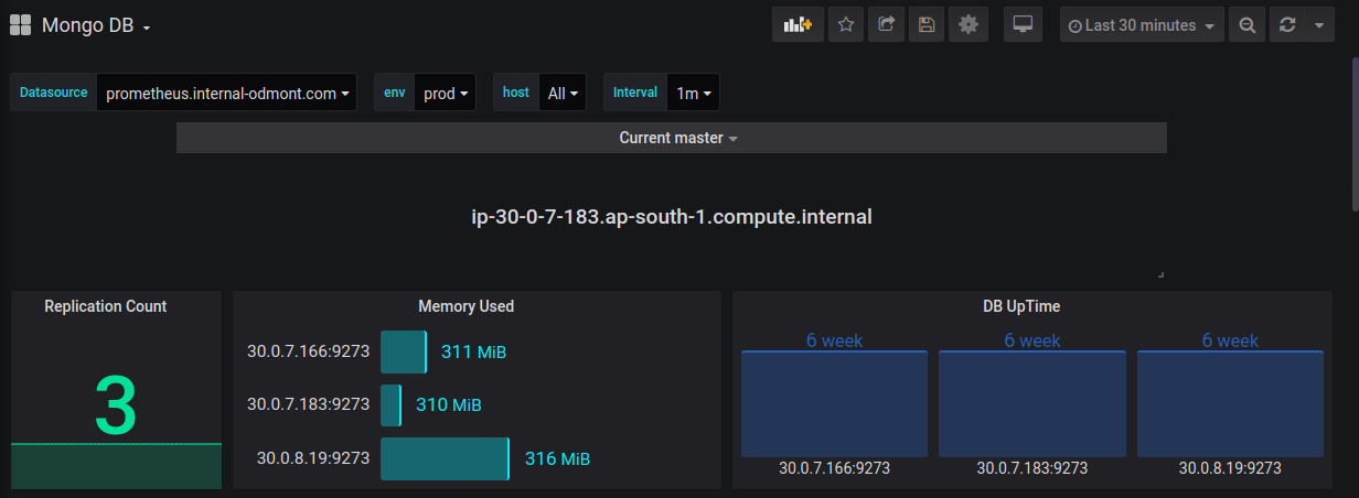 as an exporter. This dashboard will work Effeciently if replication is enabled in MongoDB Cluster.