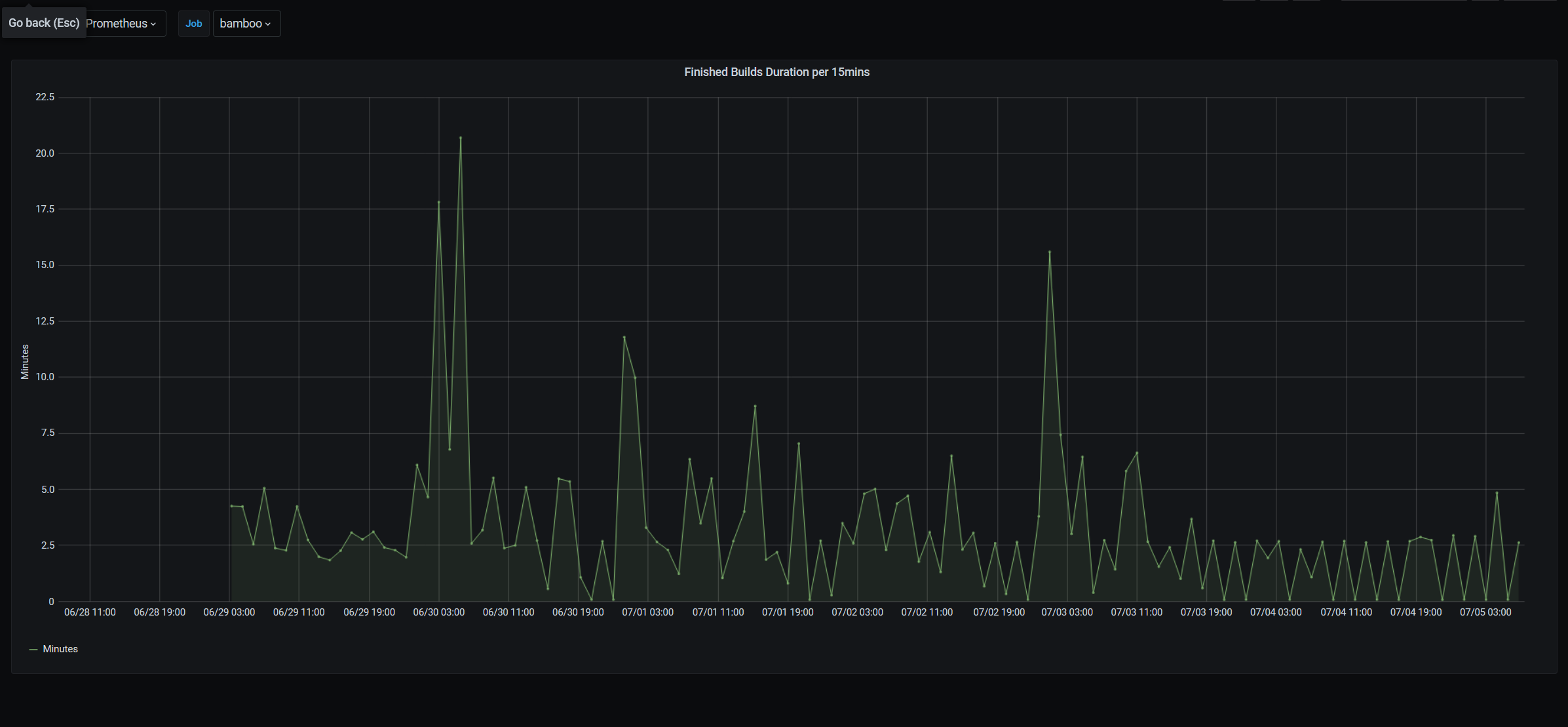 - Finished Build Duration per 15 Mins. (Execution Time)