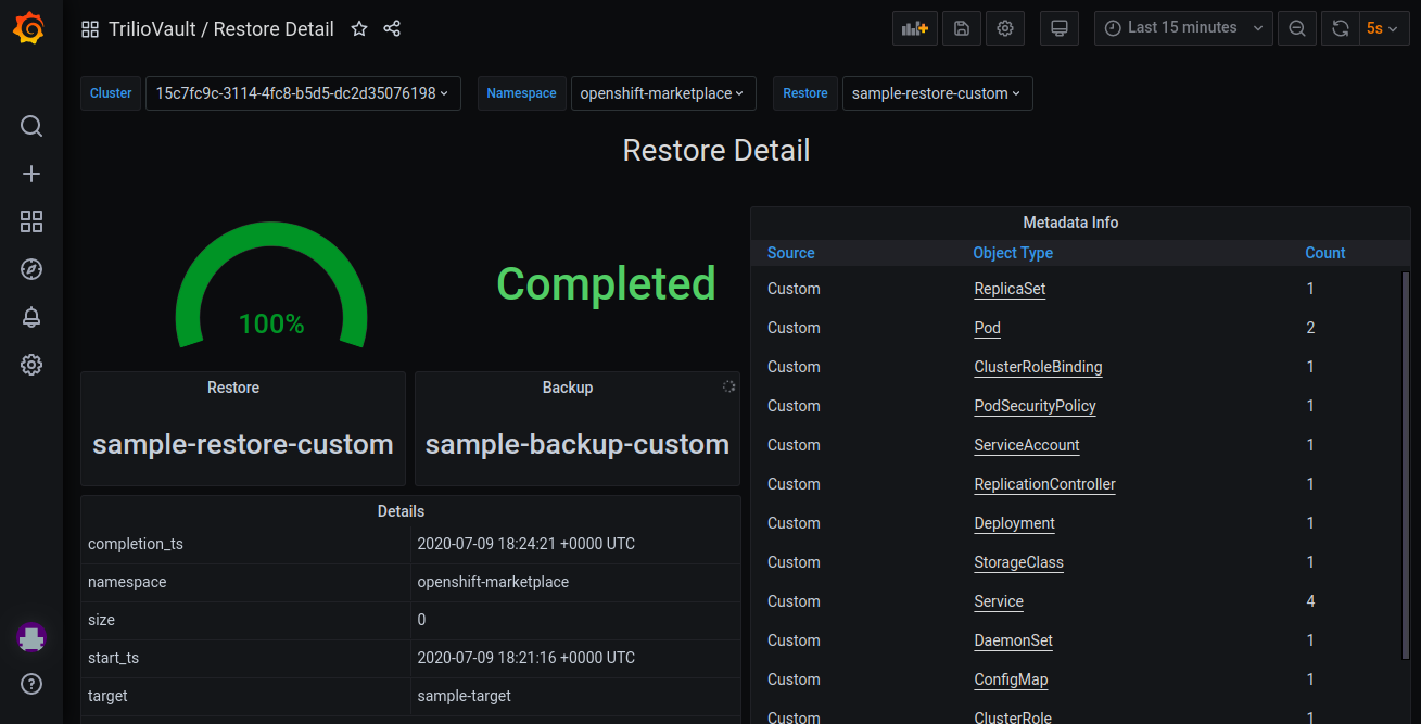 Restore Detail Dashboard of TrilioVault for Kubernetes