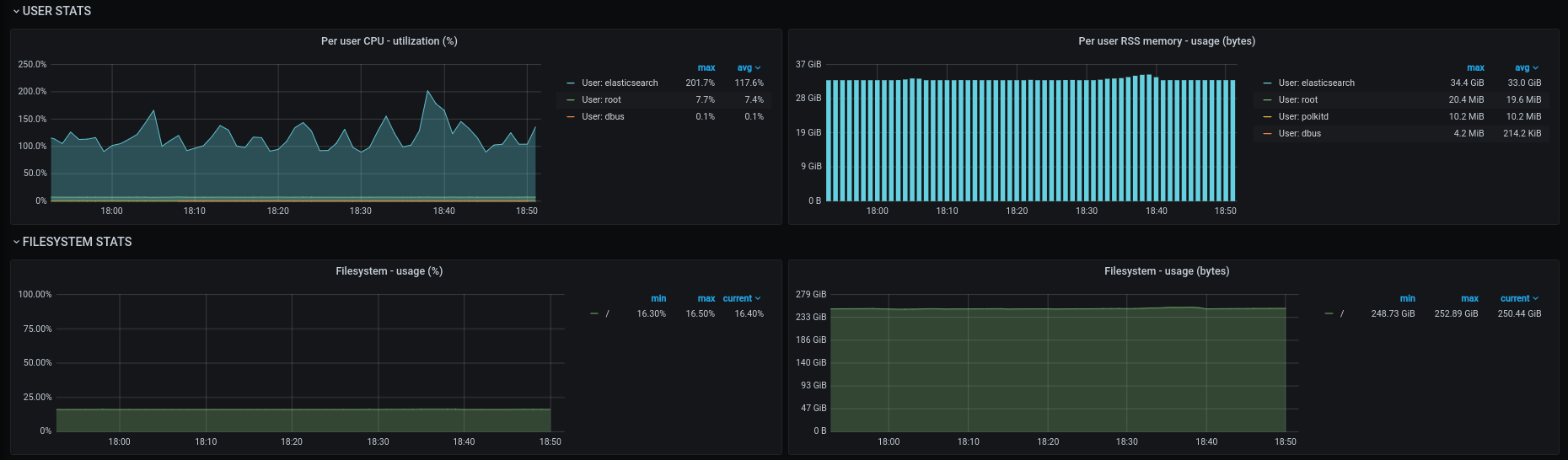 - Process stats, per process cpu utilization, per process RSS memory utilization