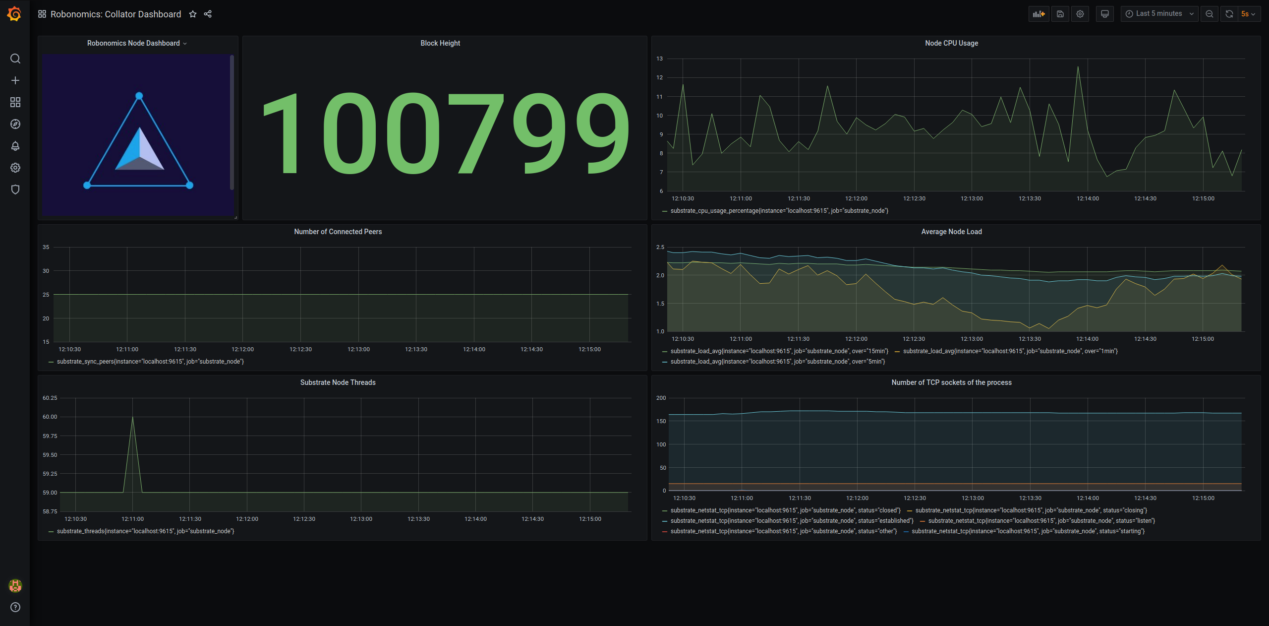 Dashboard for Robonomics Collator/Node based on Substrate. Prometheus endpoint at node port 9615.