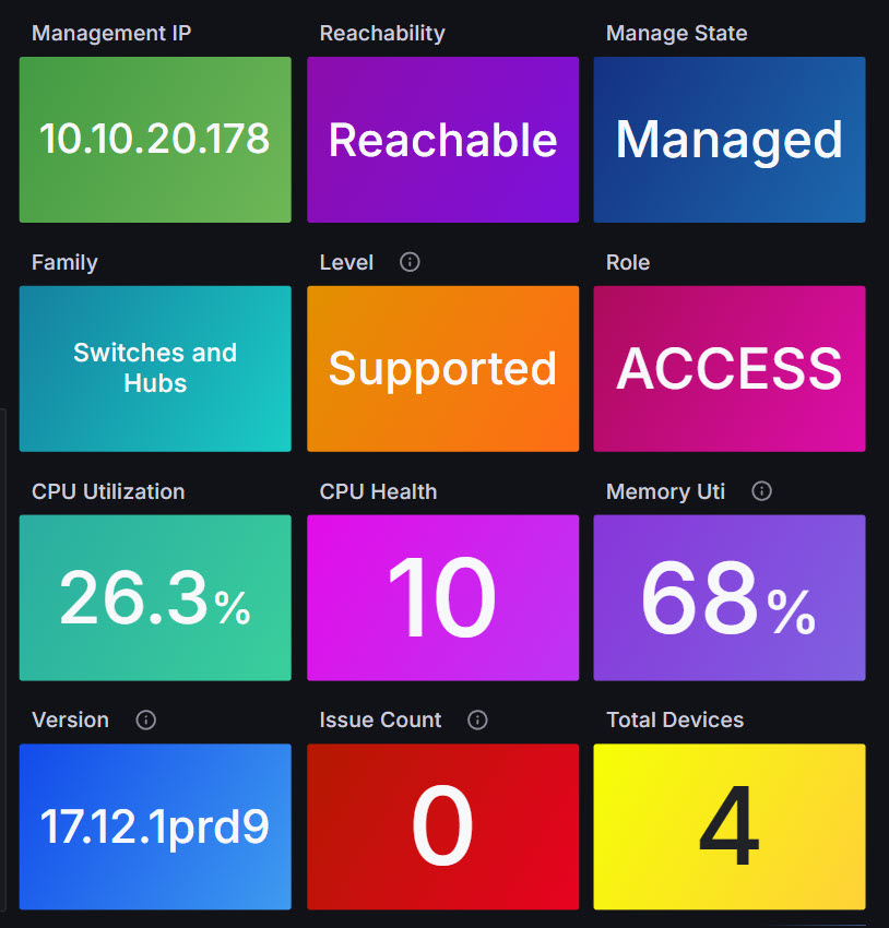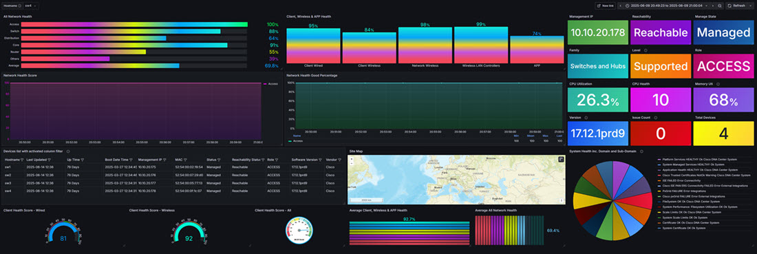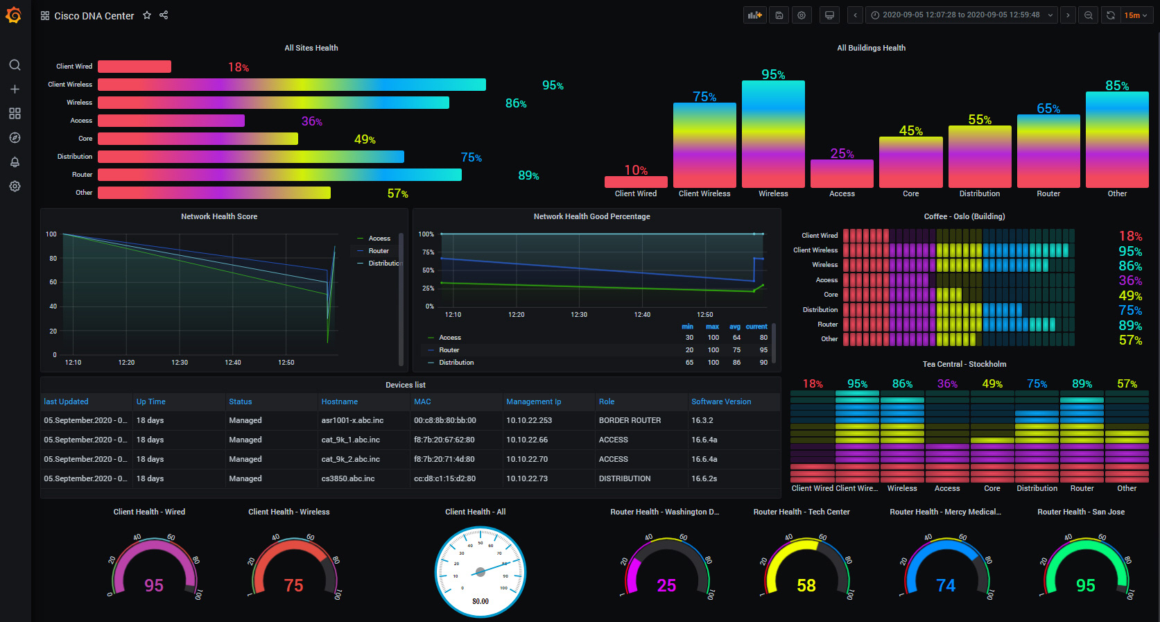 Use revision 8, Added Washington DC and Eisenhower Executive Office Building to site health panels. To getting started, visit https://hawar.no/2020/09/05/cisco-dna-center-with-grafana-dashboard