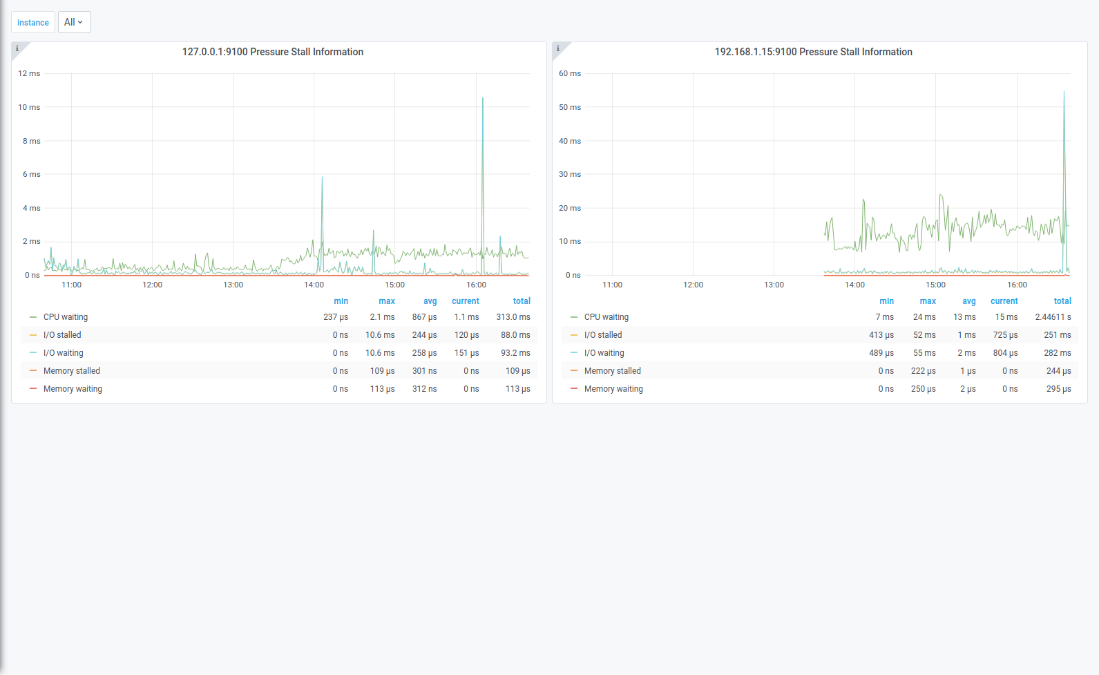Simple dashboard for displaying Pressure Stall Information for all the instances in a single dashboard.