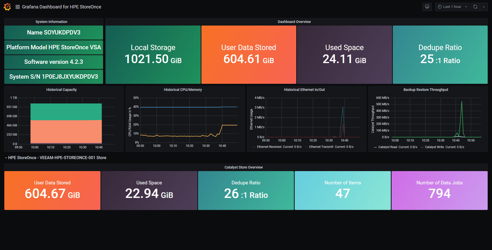 Grafana Dashboard for HPE StoreOnce