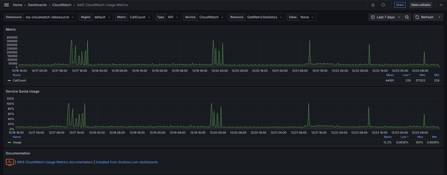 AWS CloudWatch Usage Metrics