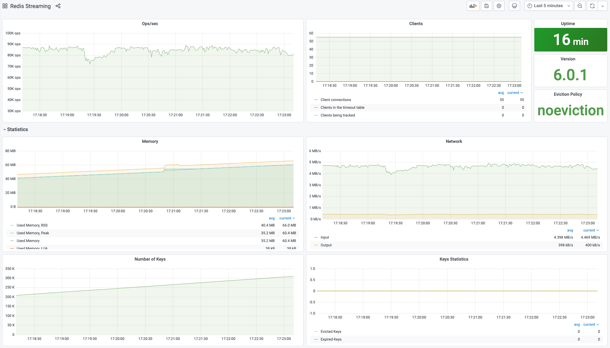 • Memory (Used Memory, Used Memory Peak, LUA, Memory Limit, and Total System memory)